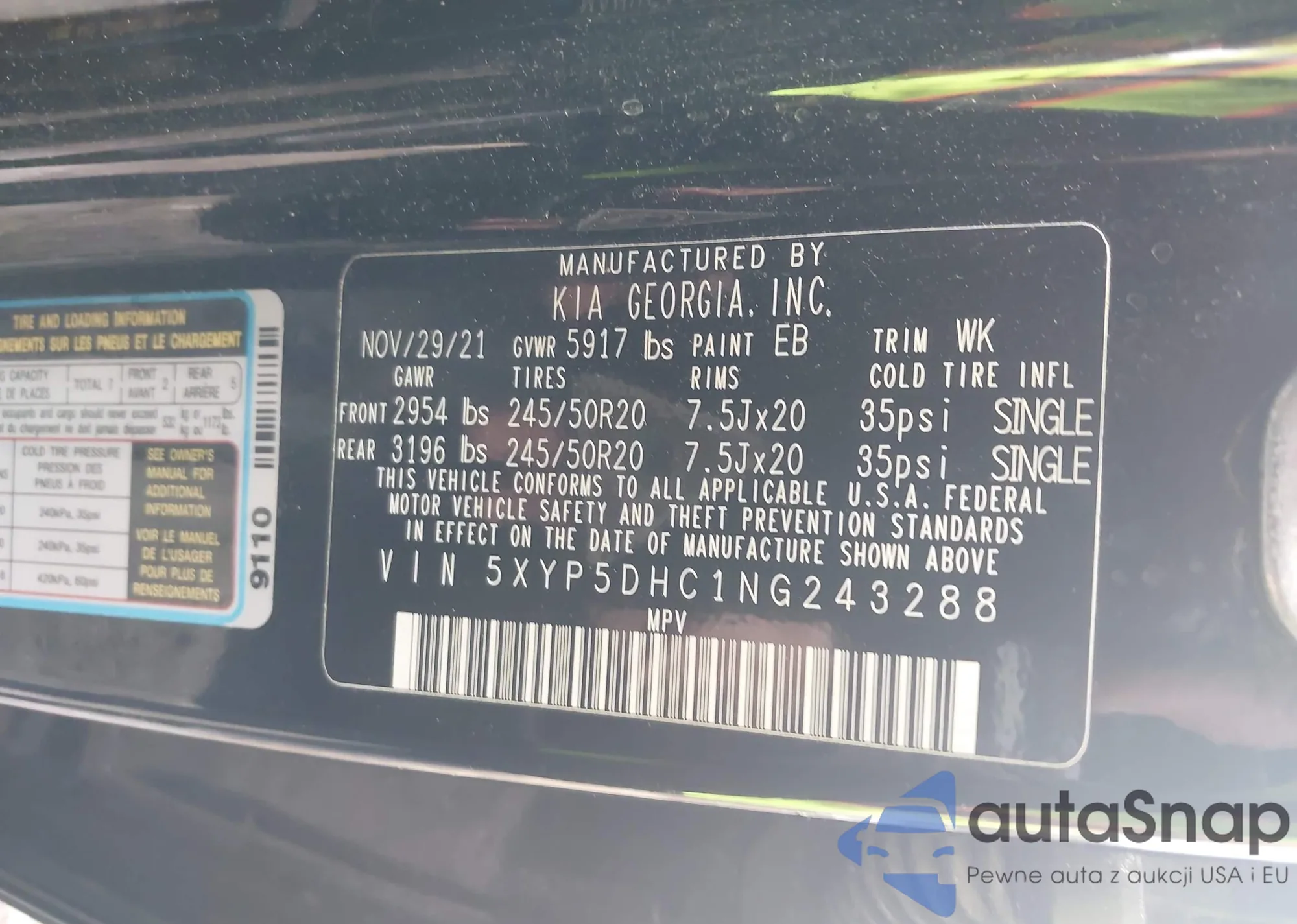 • VIN 5XYP5DHC1NG243288