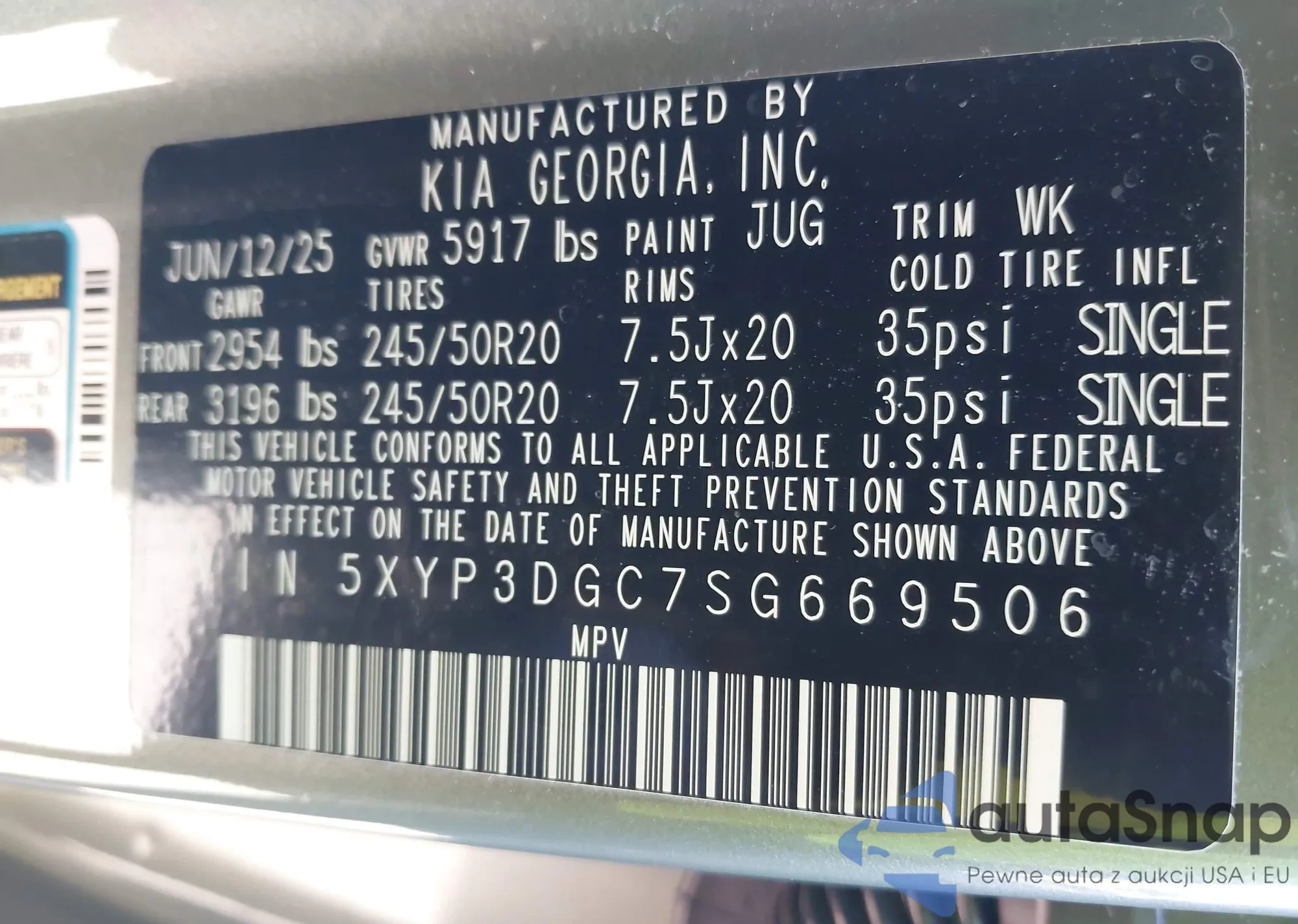 • VIN 5XYP3DGC7SG669506