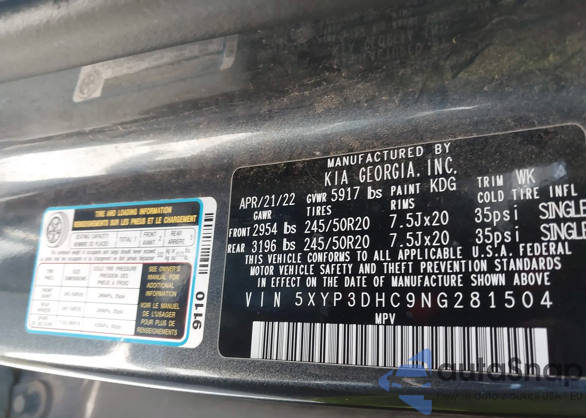 • VIN 5XYP3DHC9NG281504