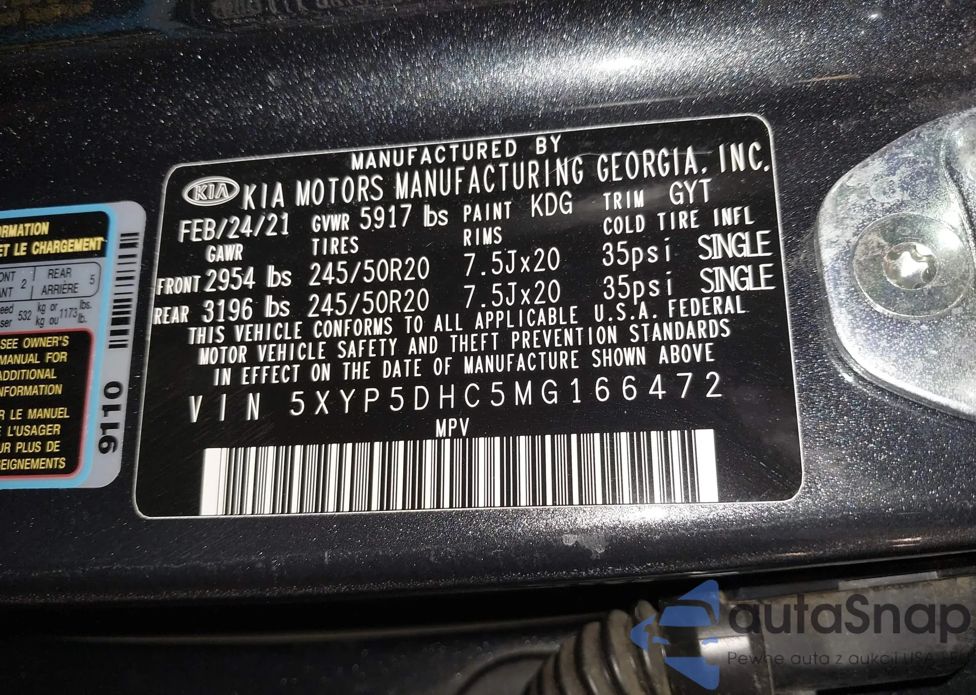 • VIN 5XYP5DHC5MG166472