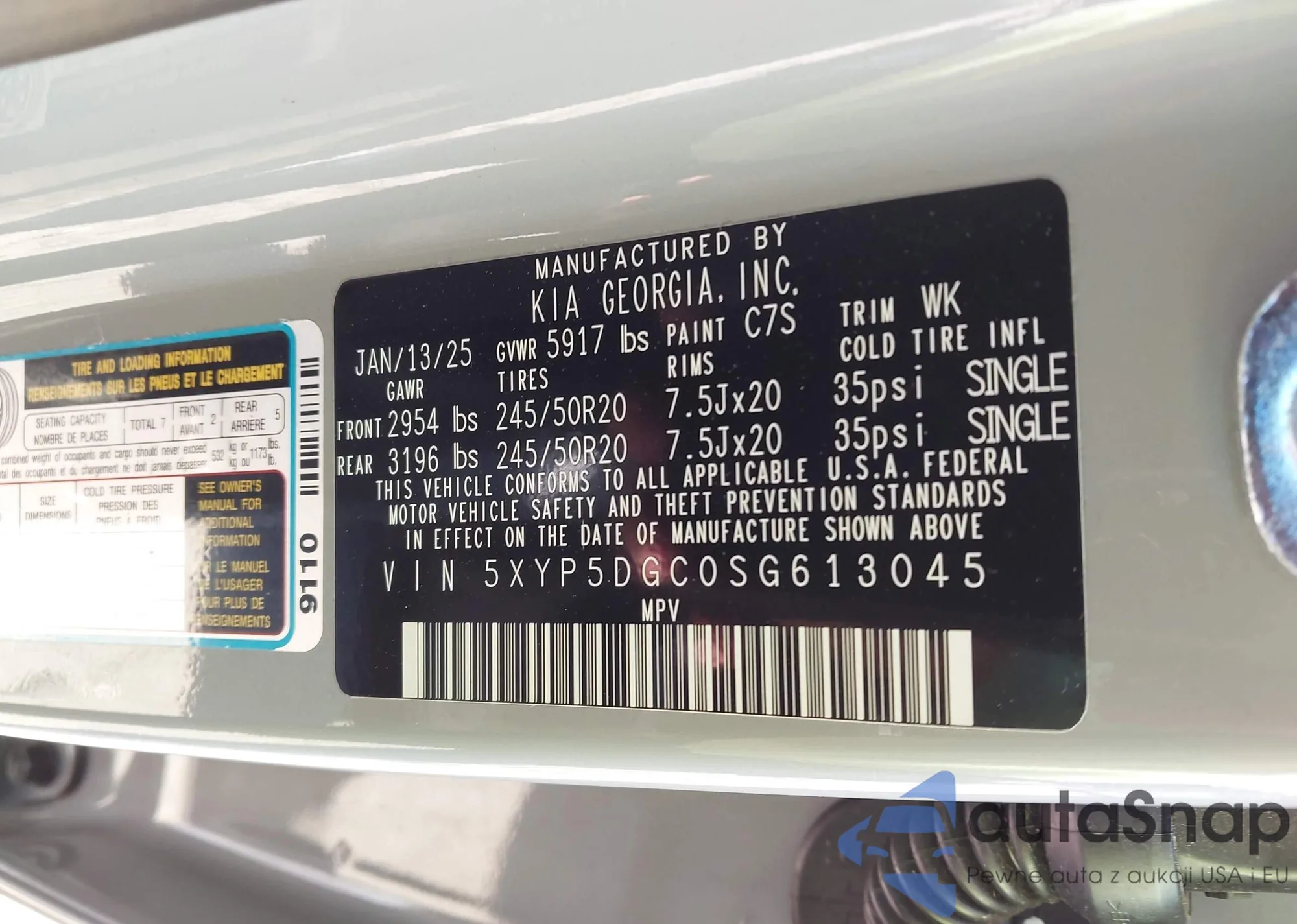 • VIN 5XYP5DGC0SG613045