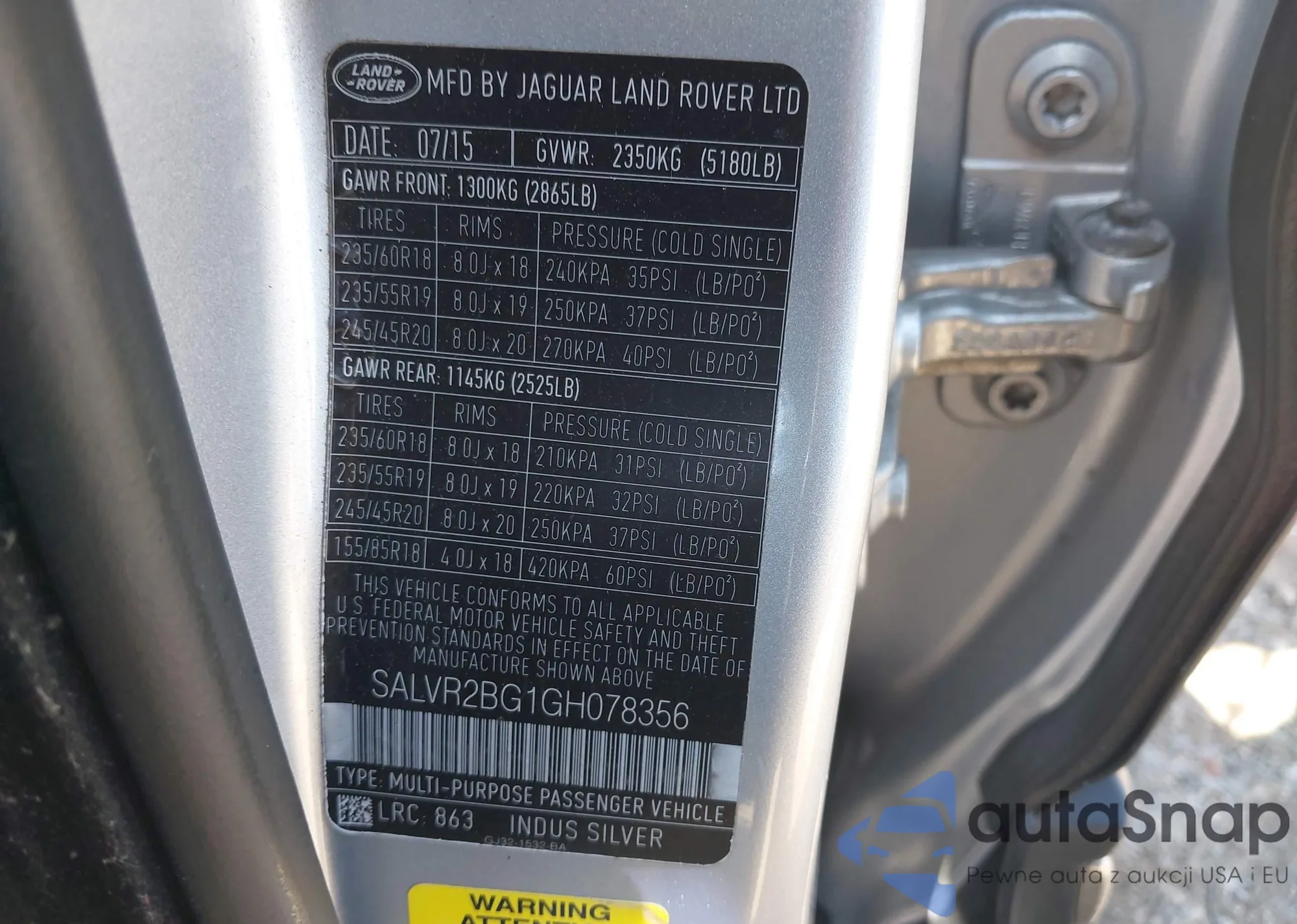 • VIN SALVR2BG1GH078356