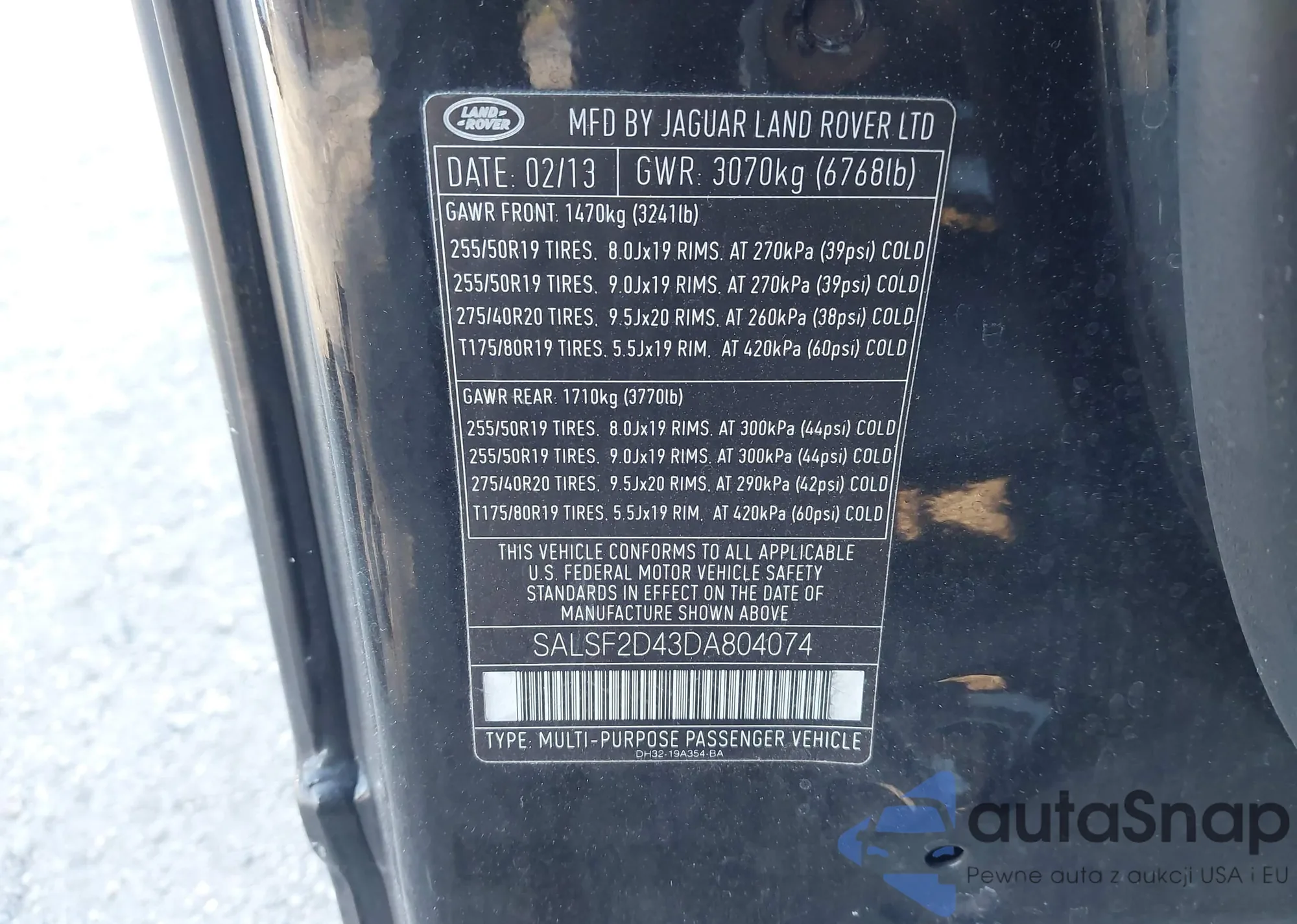 • VIN SALSF2D43DA804074