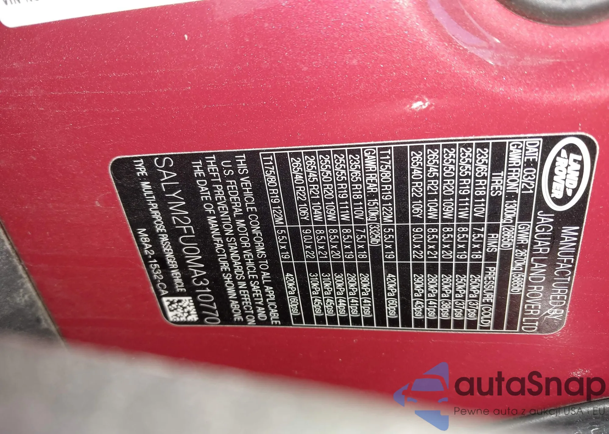 • VIN SALYM2FU0MA310770