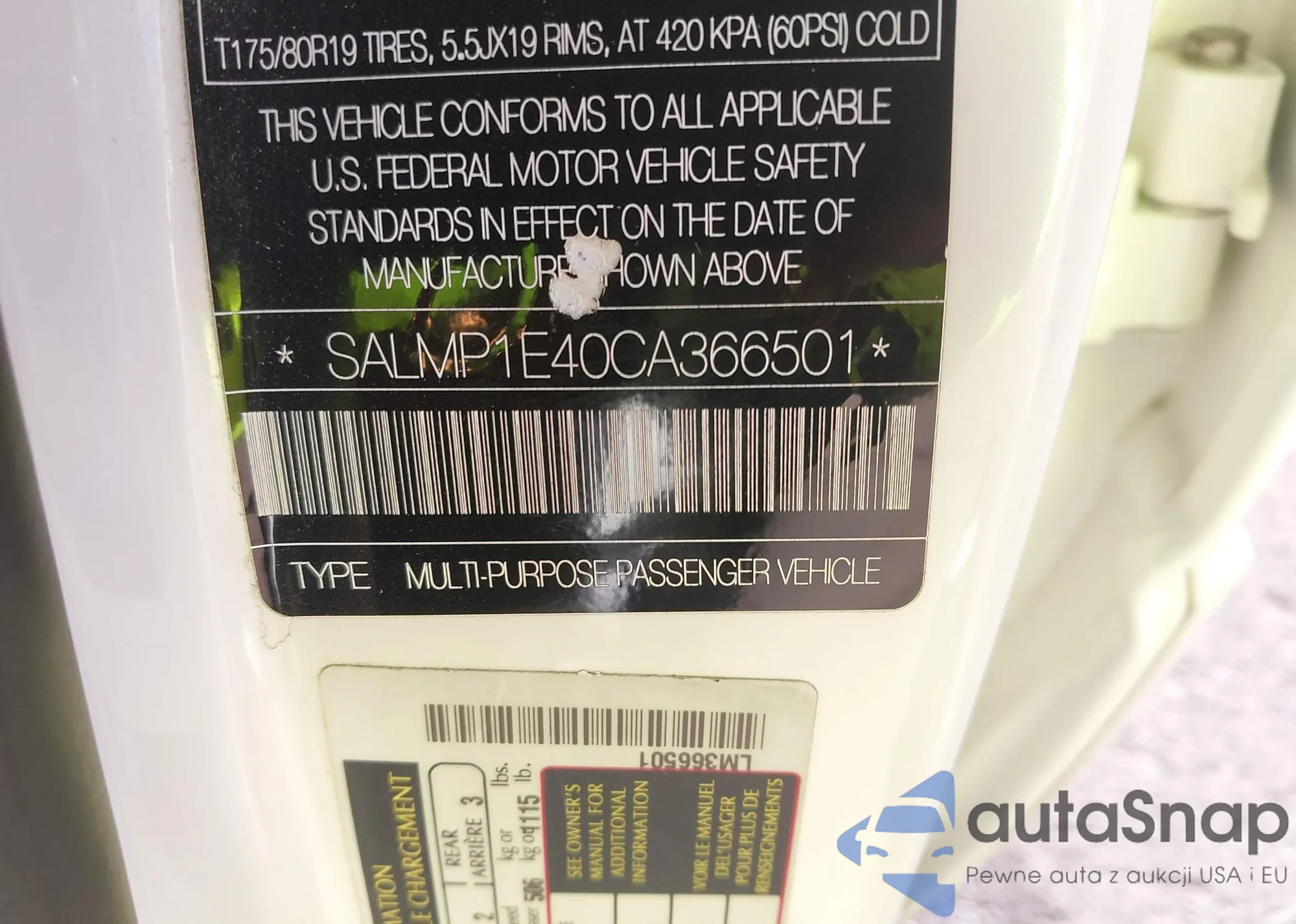 LOT: 43142967 VIN: SALMP1E40CA366501