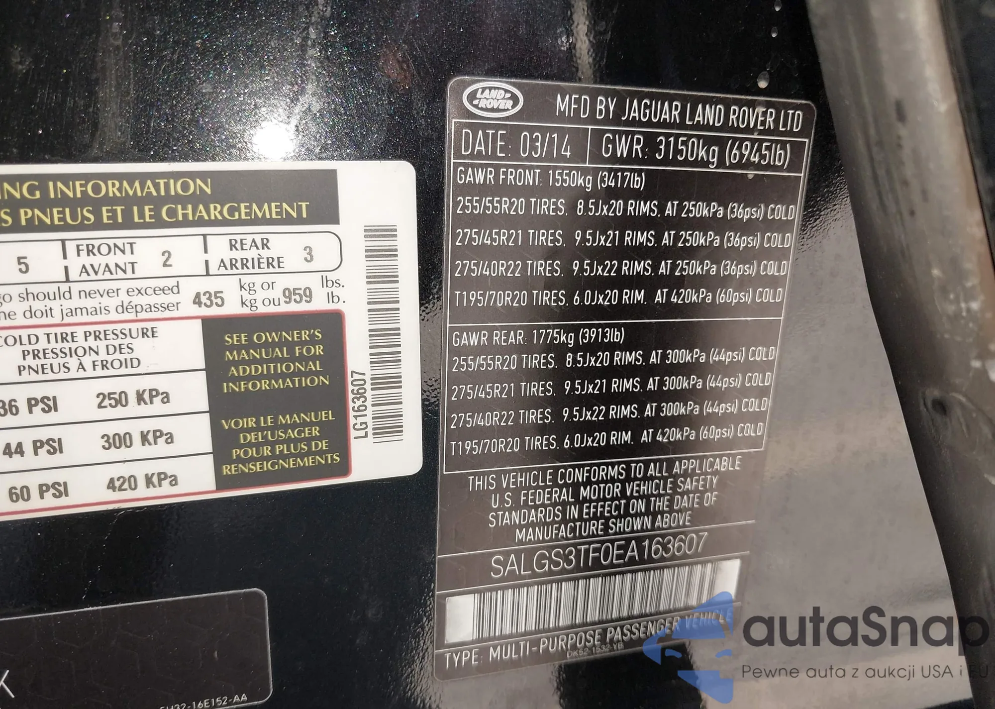 LOT: 43008632 VIN: SALGS3TF0EA163607