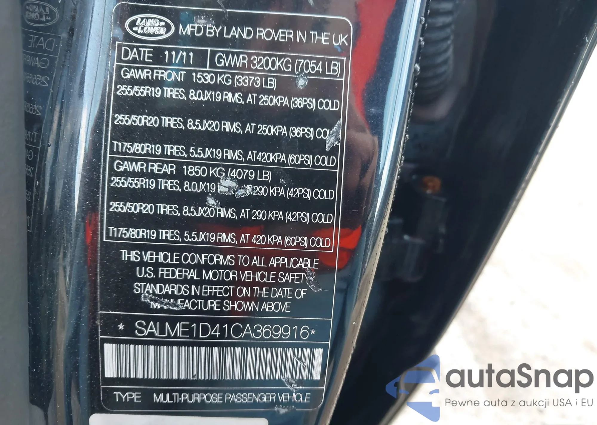 LOT: 43592999 VIN: SALME1D41CA369916