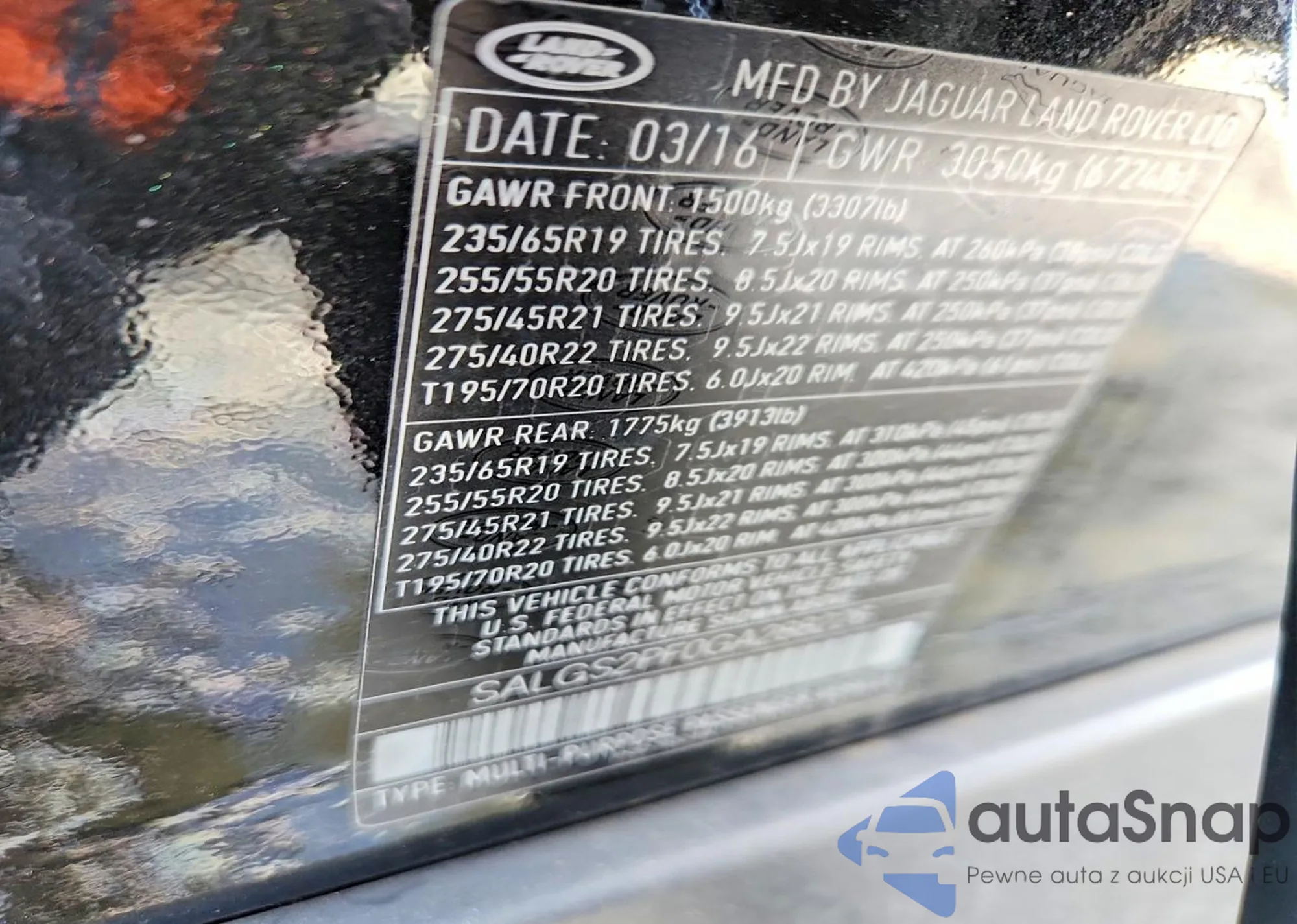 LOT: 78165305 VIN: SALWR2VF3GA571228
