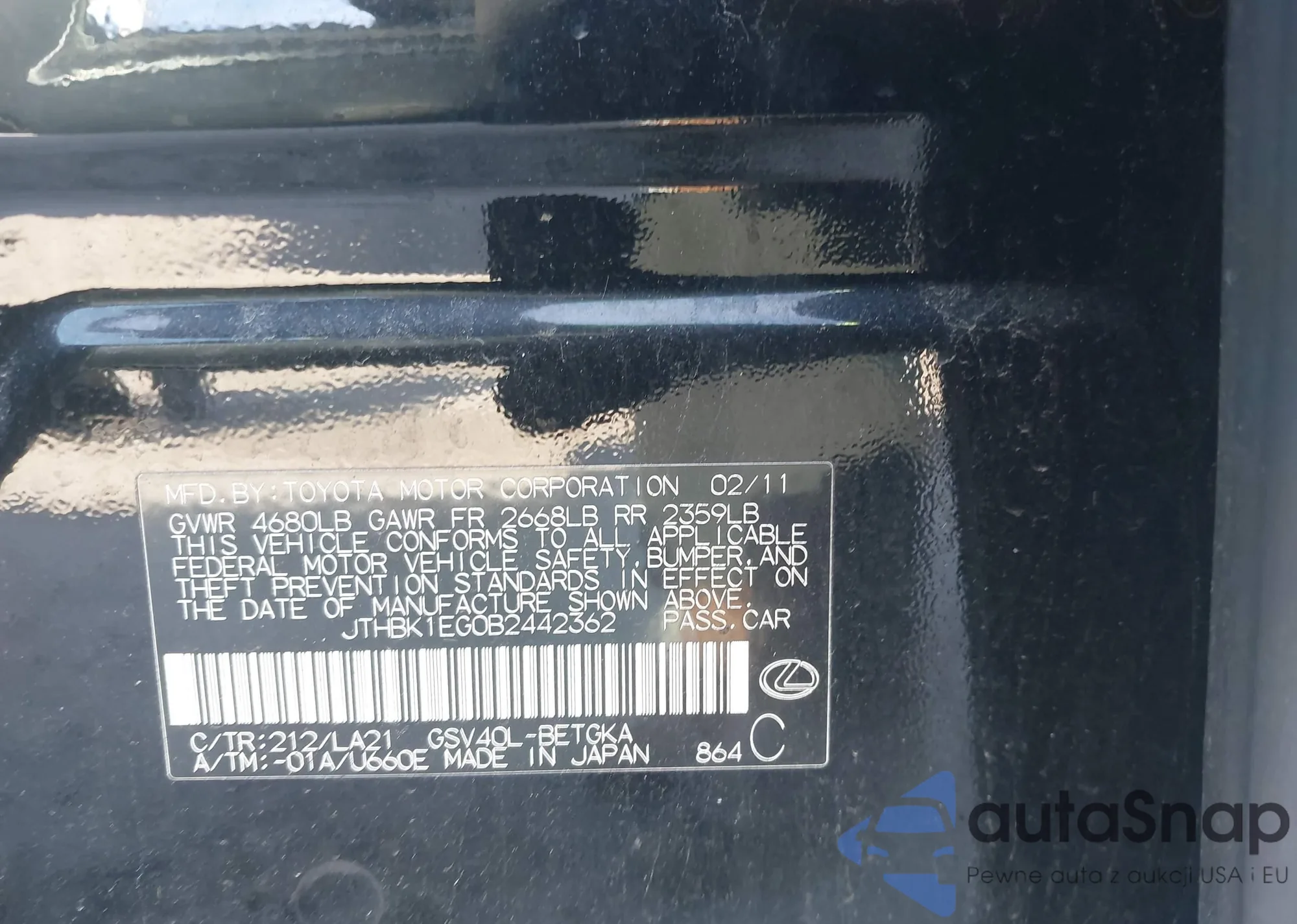 LOT: 44133981 VIN: JTHBK1EG0B2442362
