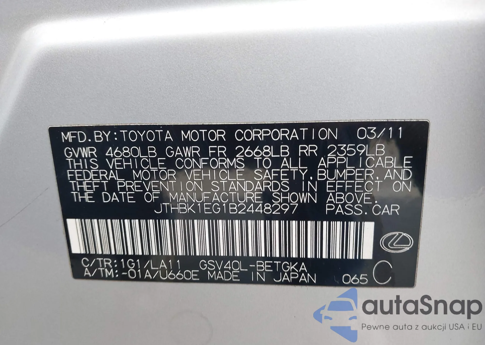LOT: 44224408 VIN: JTHBJ46G272048422