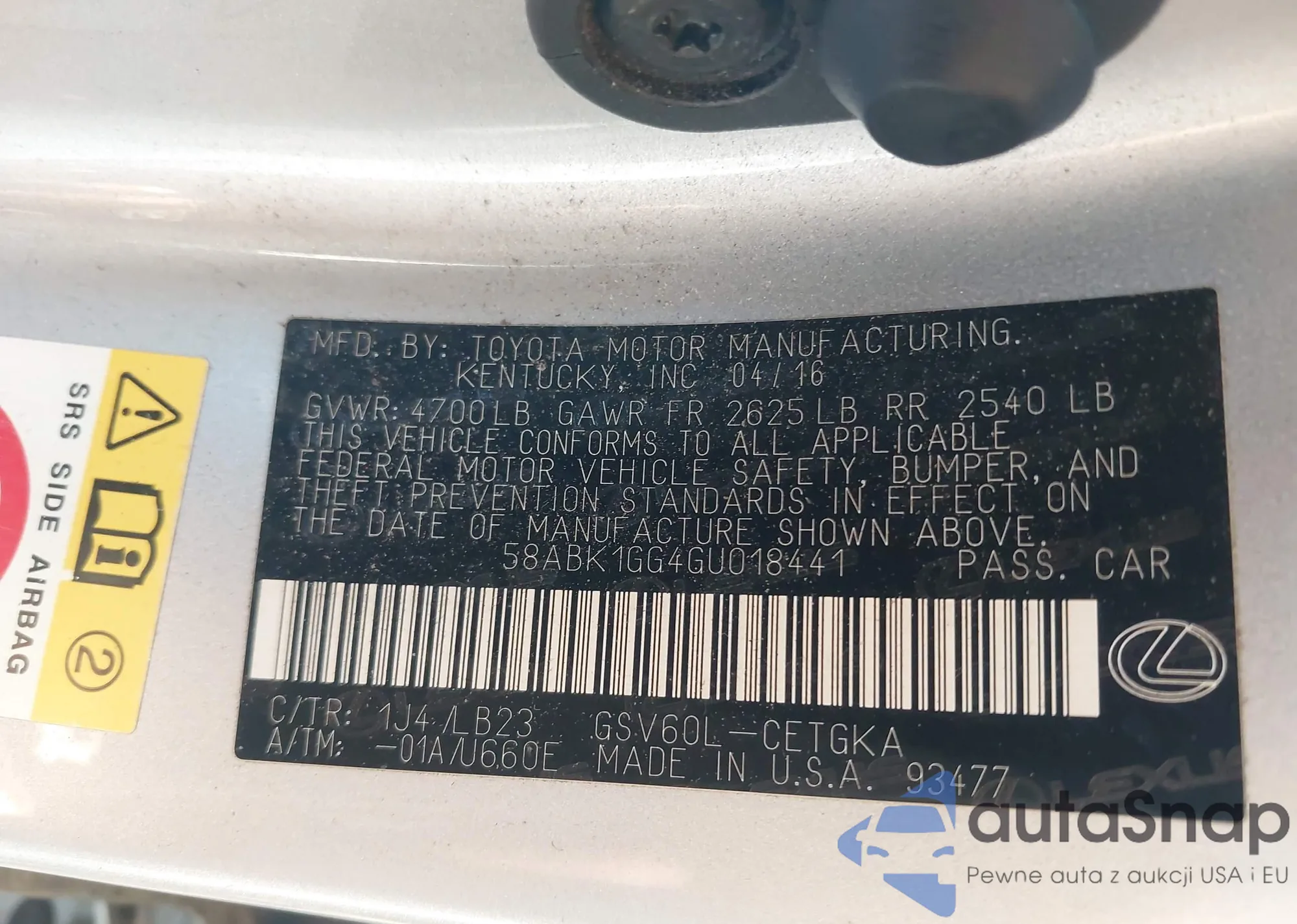 • VIN 58ABK1GG4GU018441