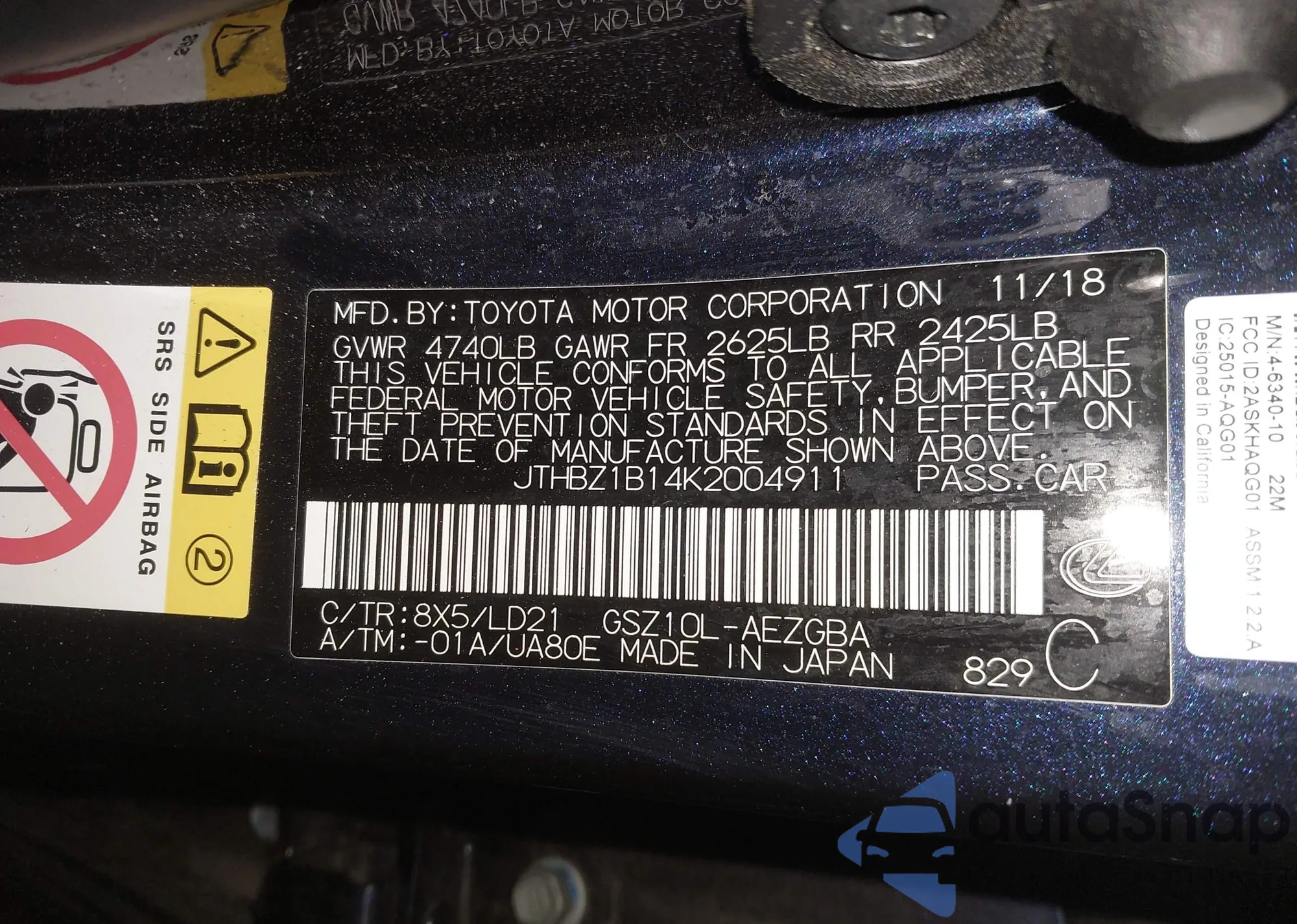• VIN JTHBZ1B14K2004911