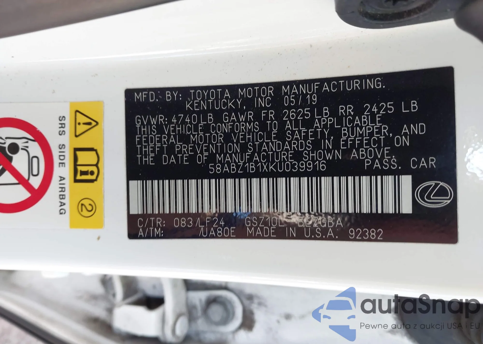 • VIN 58ABZ1B1XKU039916