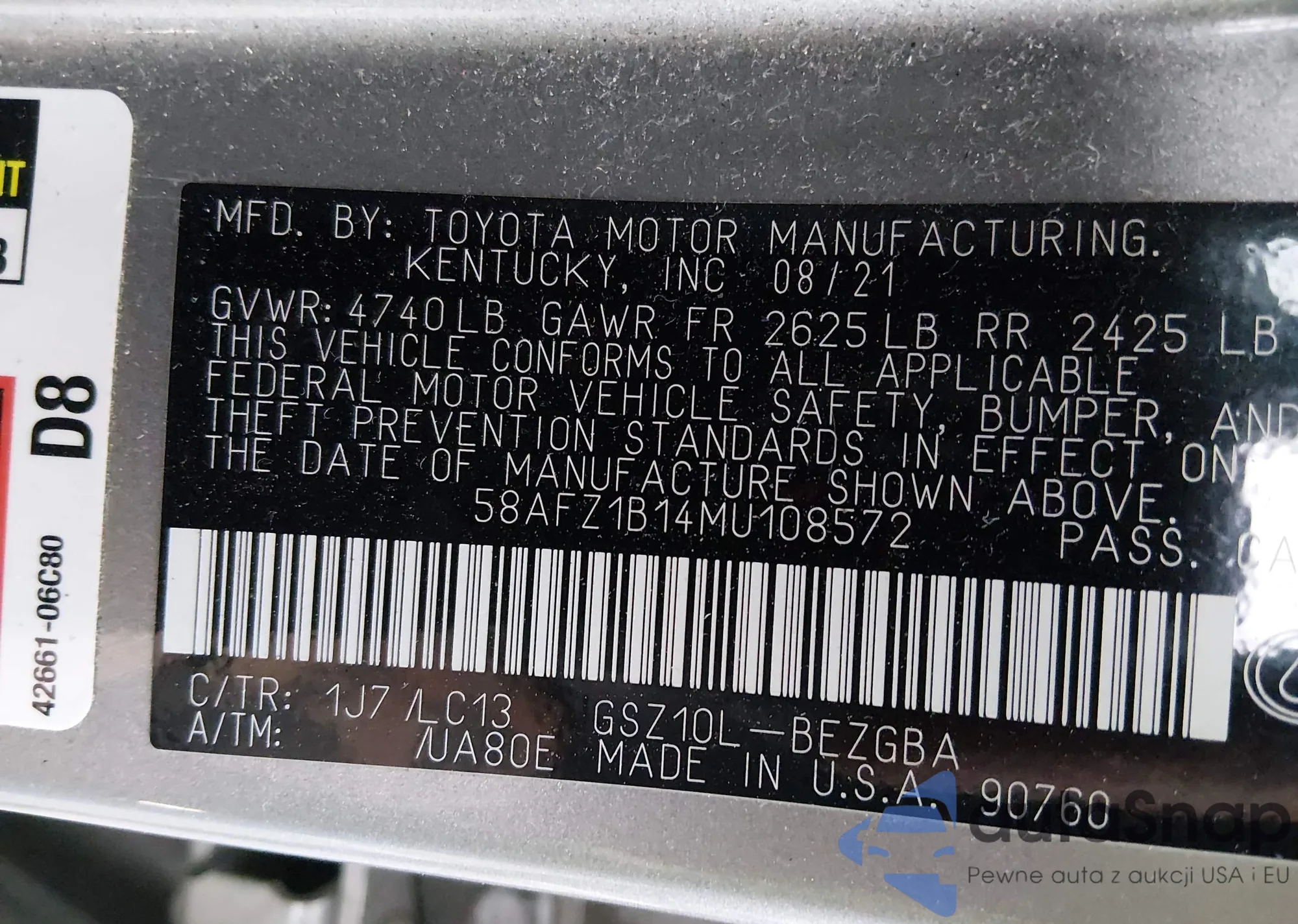 • VIN 58AFZ1B14MU108572