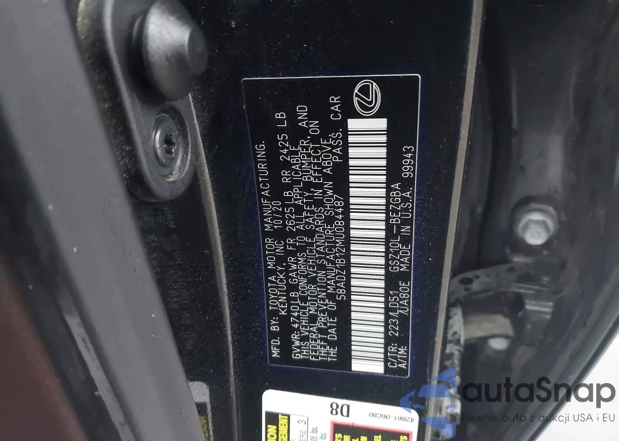LOT: 43906286 VIN: 58ABZ1B1XKU024171