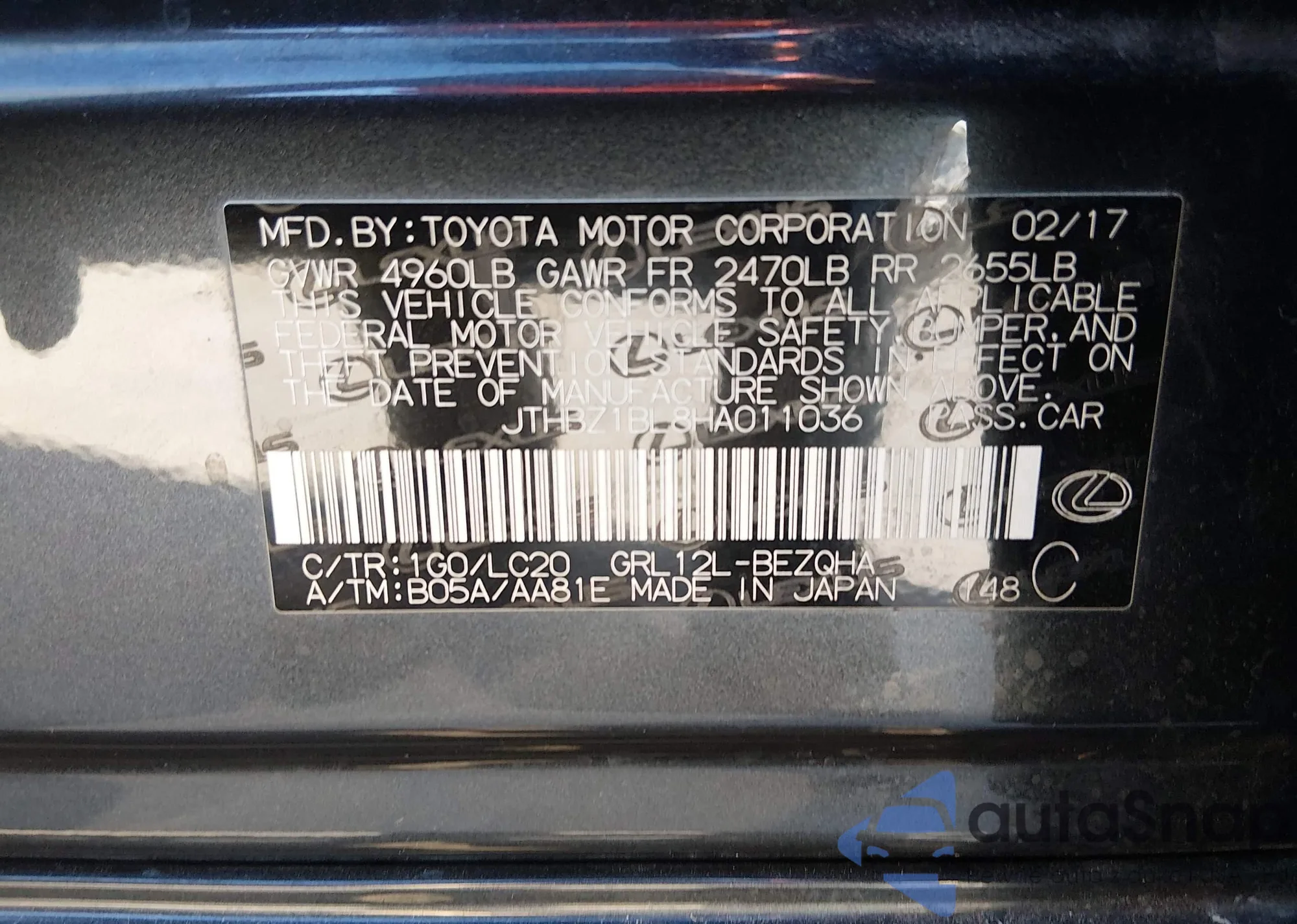 • VIN JTHBZ1BL8HA011036