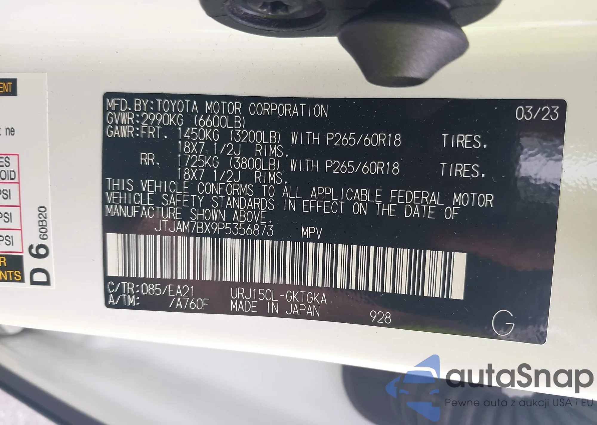 LOT: 40164892 VIN: JTJAM7BX9P5356873
