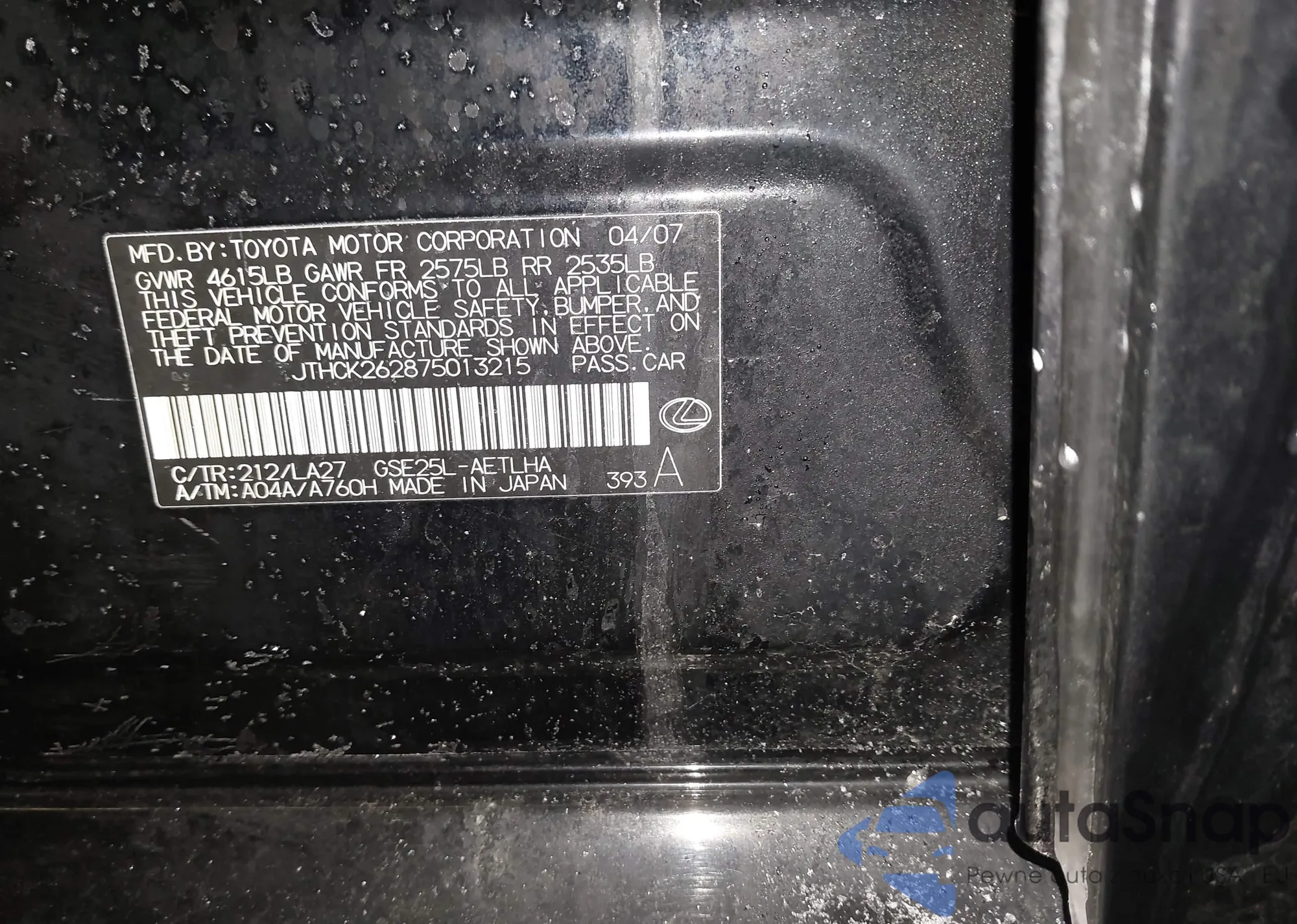 LOT: 44285451 VIN: JTHCK262875013215