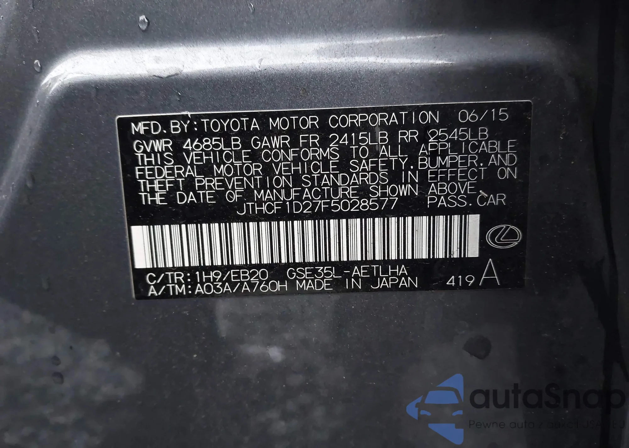 • VIN JTHCF1D27F5028577