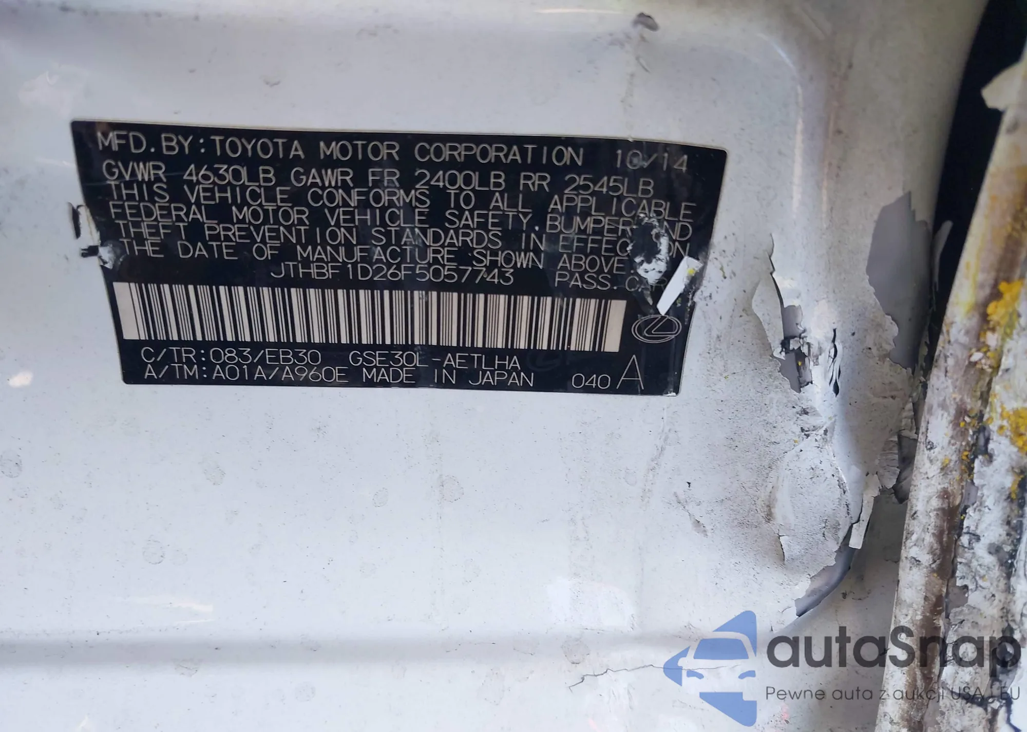 LOT: 44314513 VIN: JTHBF1D26F5057743