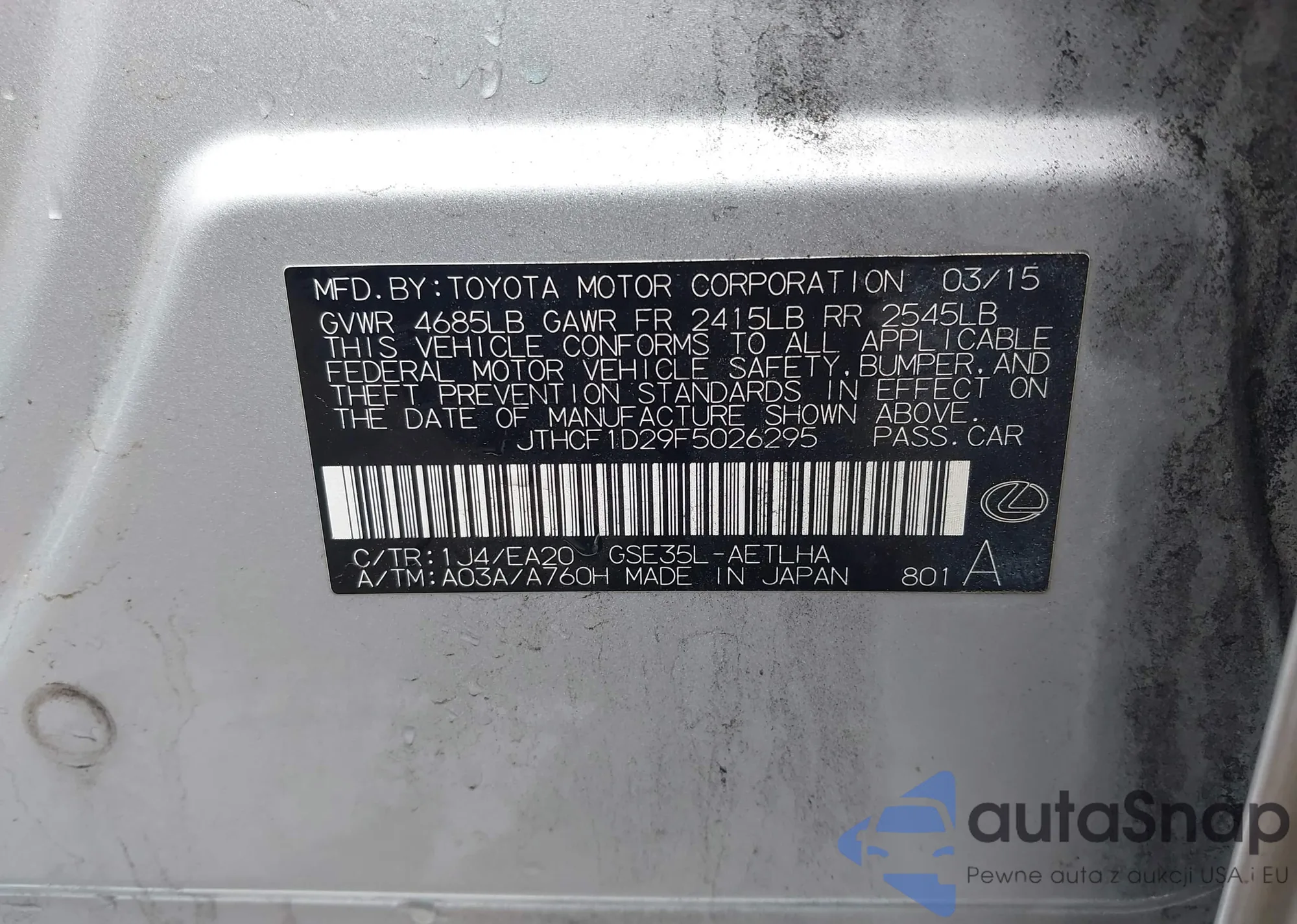 2015 Lexus Is 250 z USA, uszkodzony, nr VIN JTHCF1D29F5026295