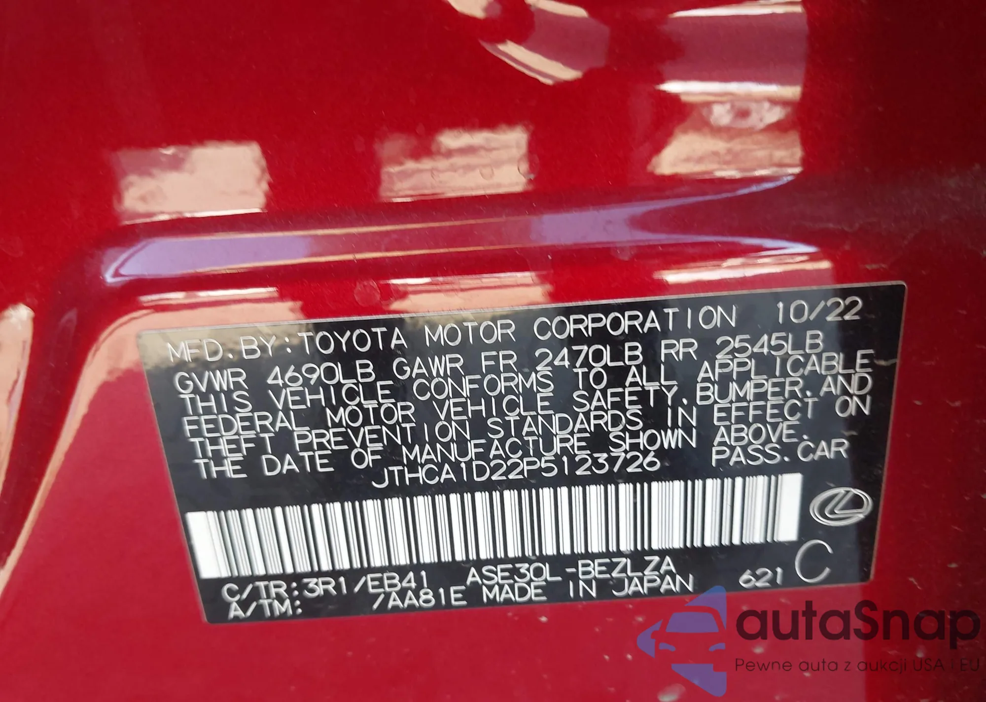 LOT: 43909947 VIN: JTHCA1D22P5123726