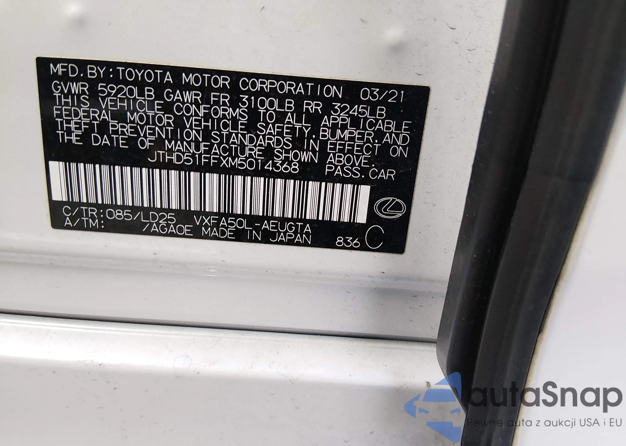 • VIN JTHD51FFXM5014368