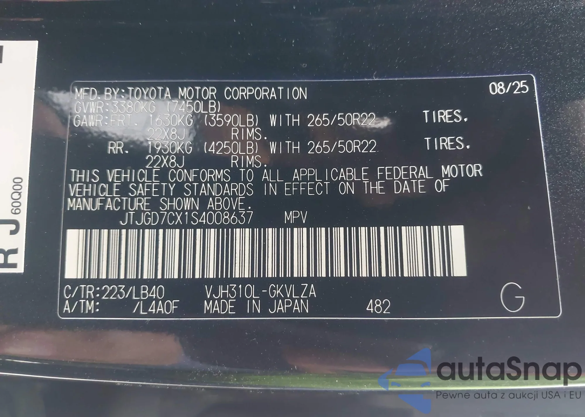 • VIN JTJGD7CX1S4008637