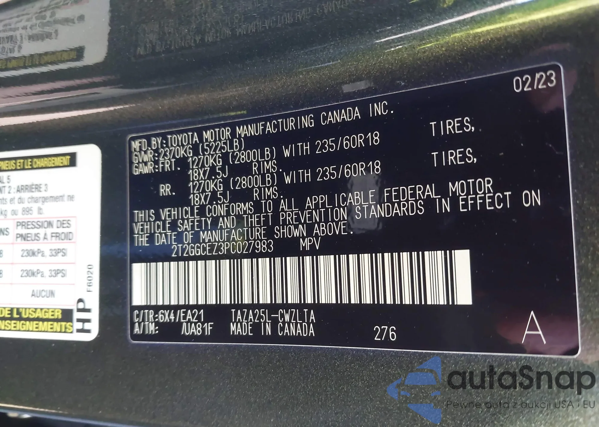 LOT: 43468370 VIN: 2T2GGCEZ3PC027983