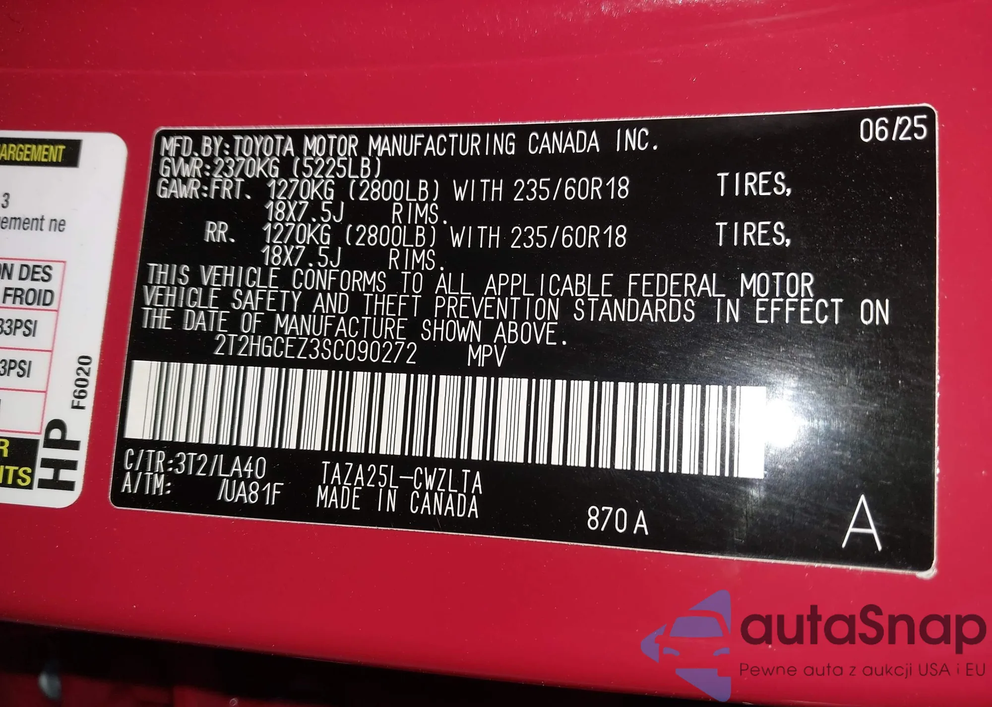 LOT: 43569825 VIN: 2T2HGCEZ3SC090272