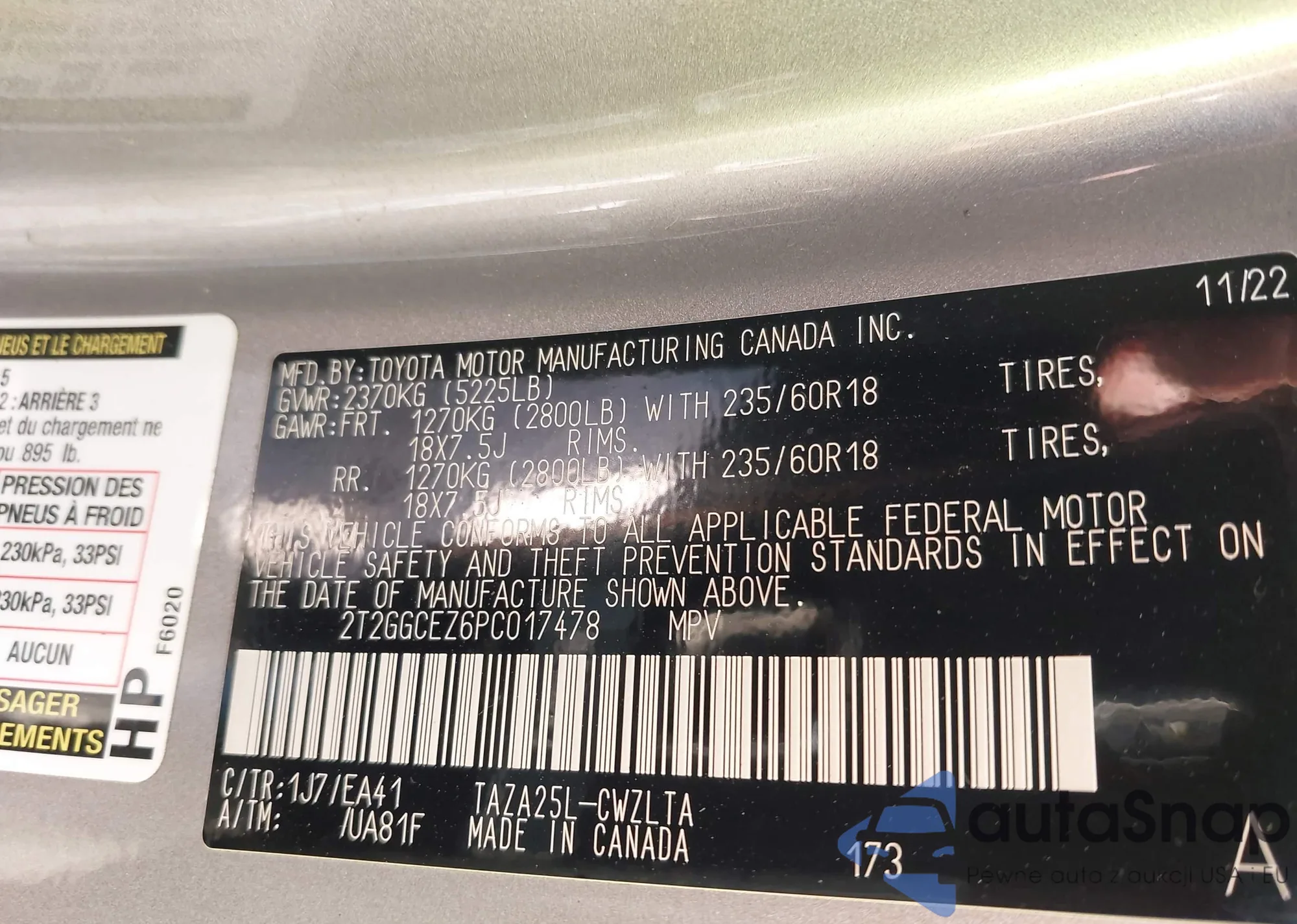 • VIN 2T2GGCEZ6PC017478