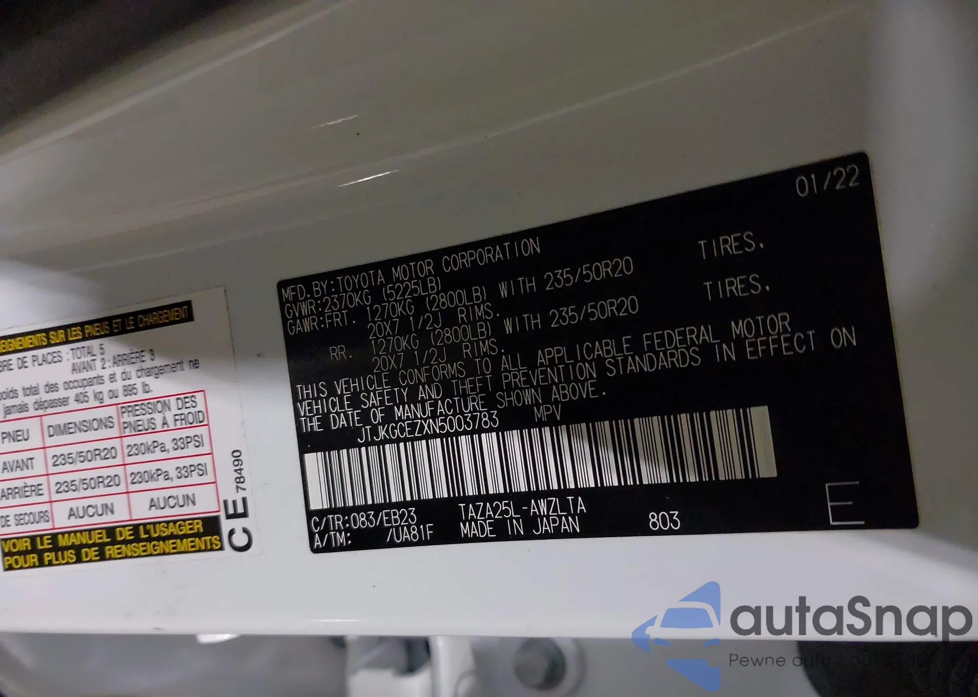 LOT: 44092944 VIN: JTJKGCEZXN5003783