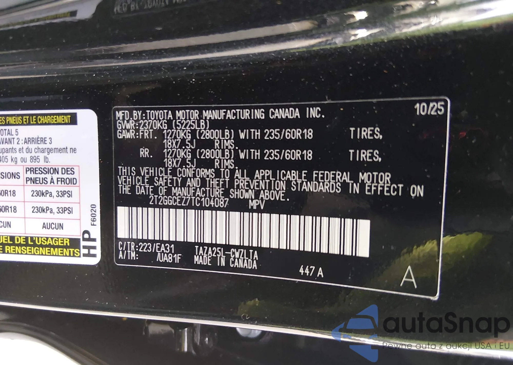 • VIN 2T2GGCEZ7TC104087