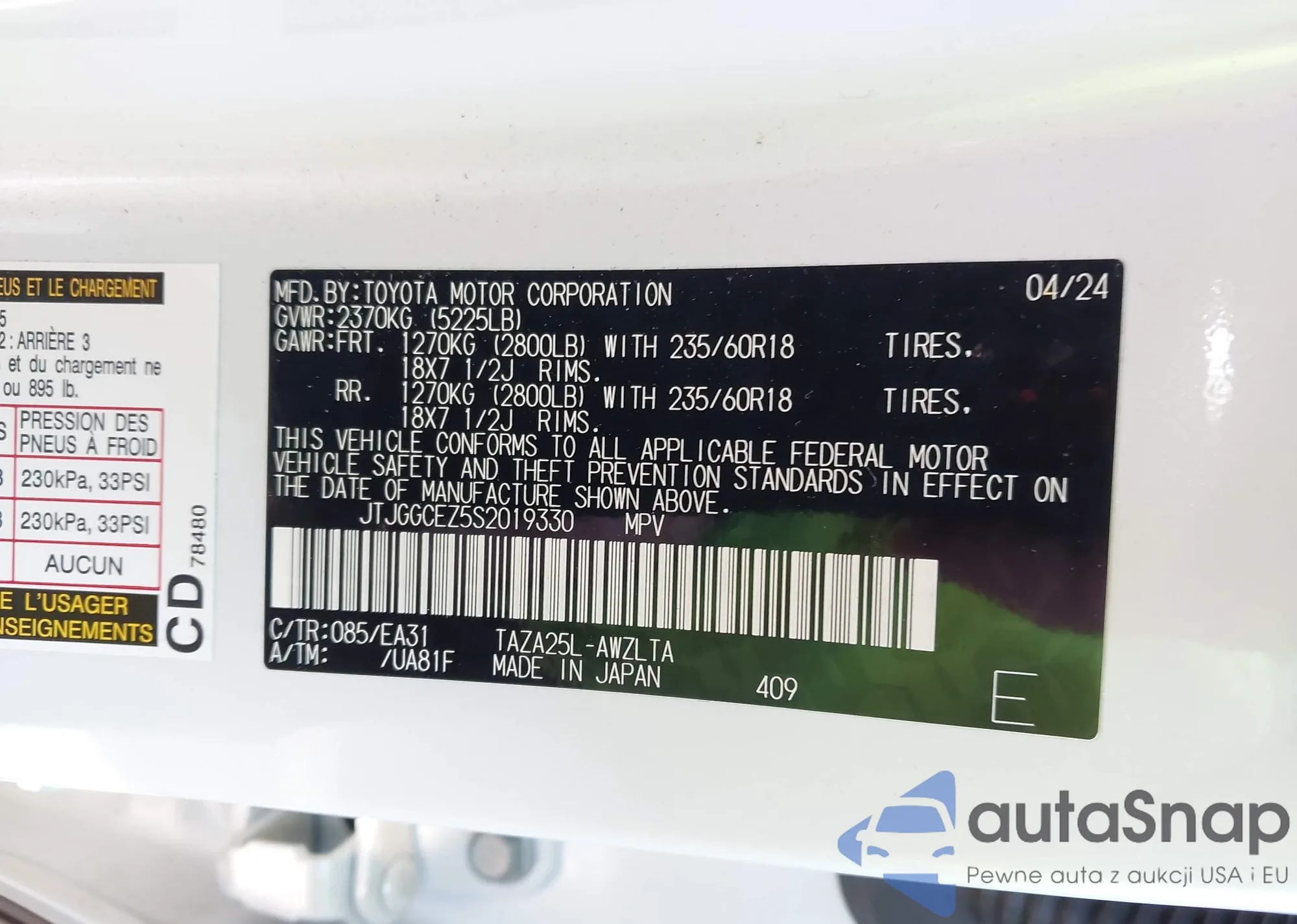 • VIN JTJGGCEZ5S2019330