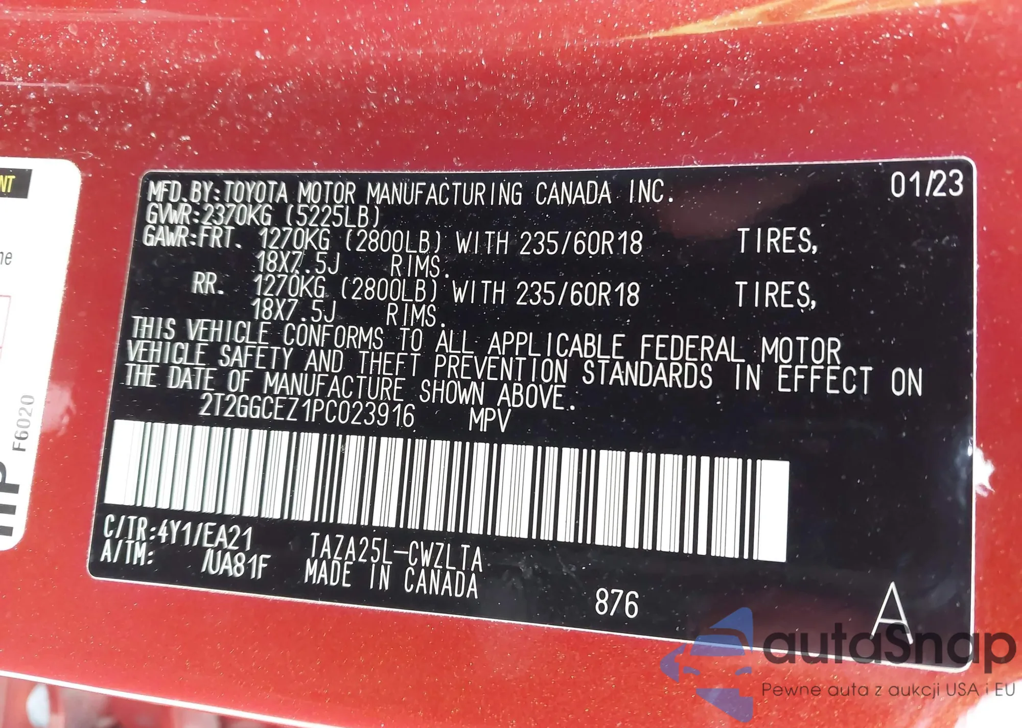 LOT: 43969407 VIN: 2T2GGCEZ1PC023916