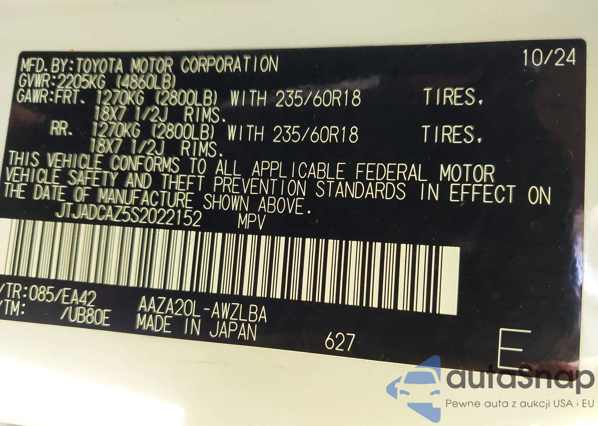 • VIN JTJADCAZ5S2022152