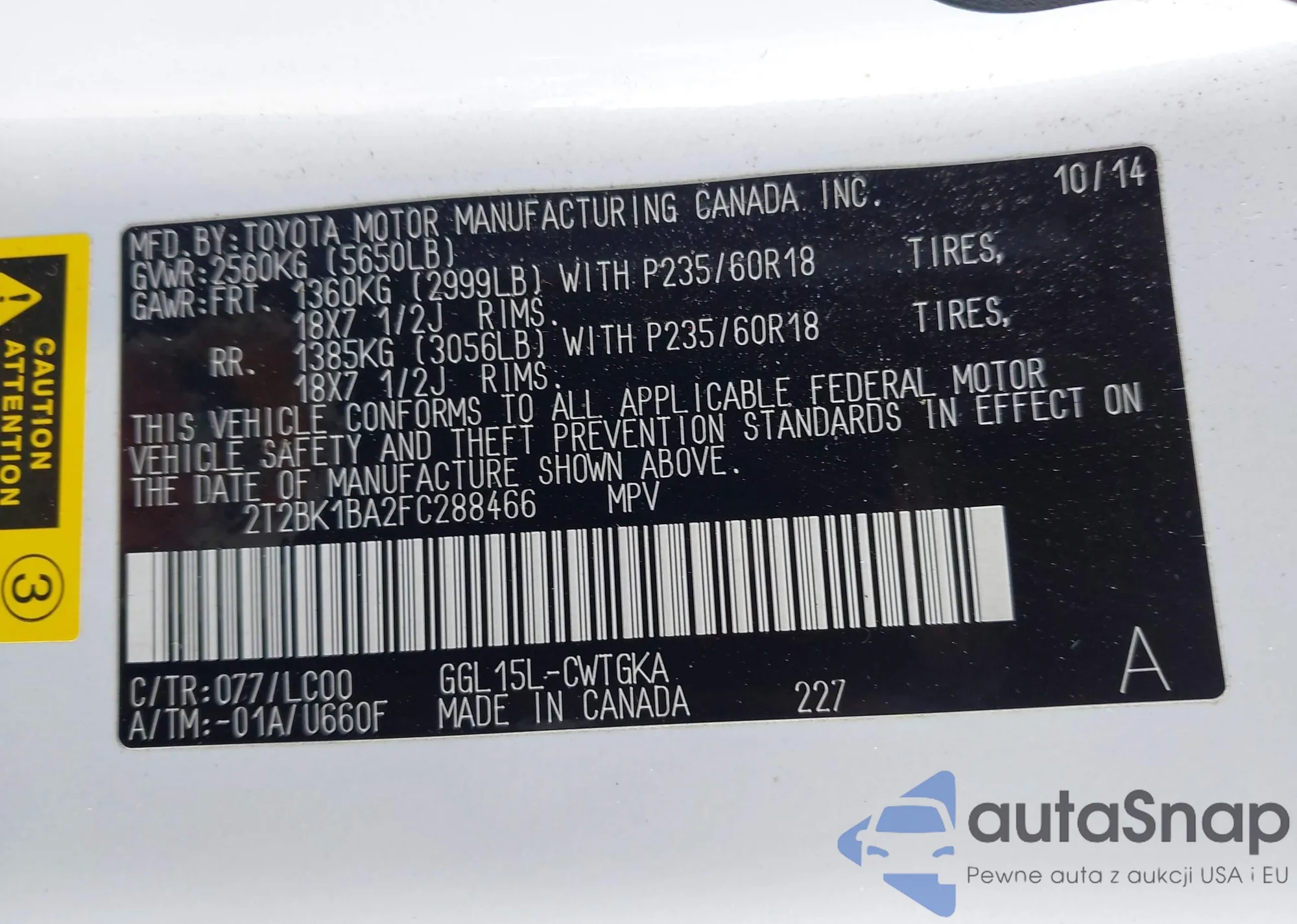 • VIN 2T2BK1BA2FC288466