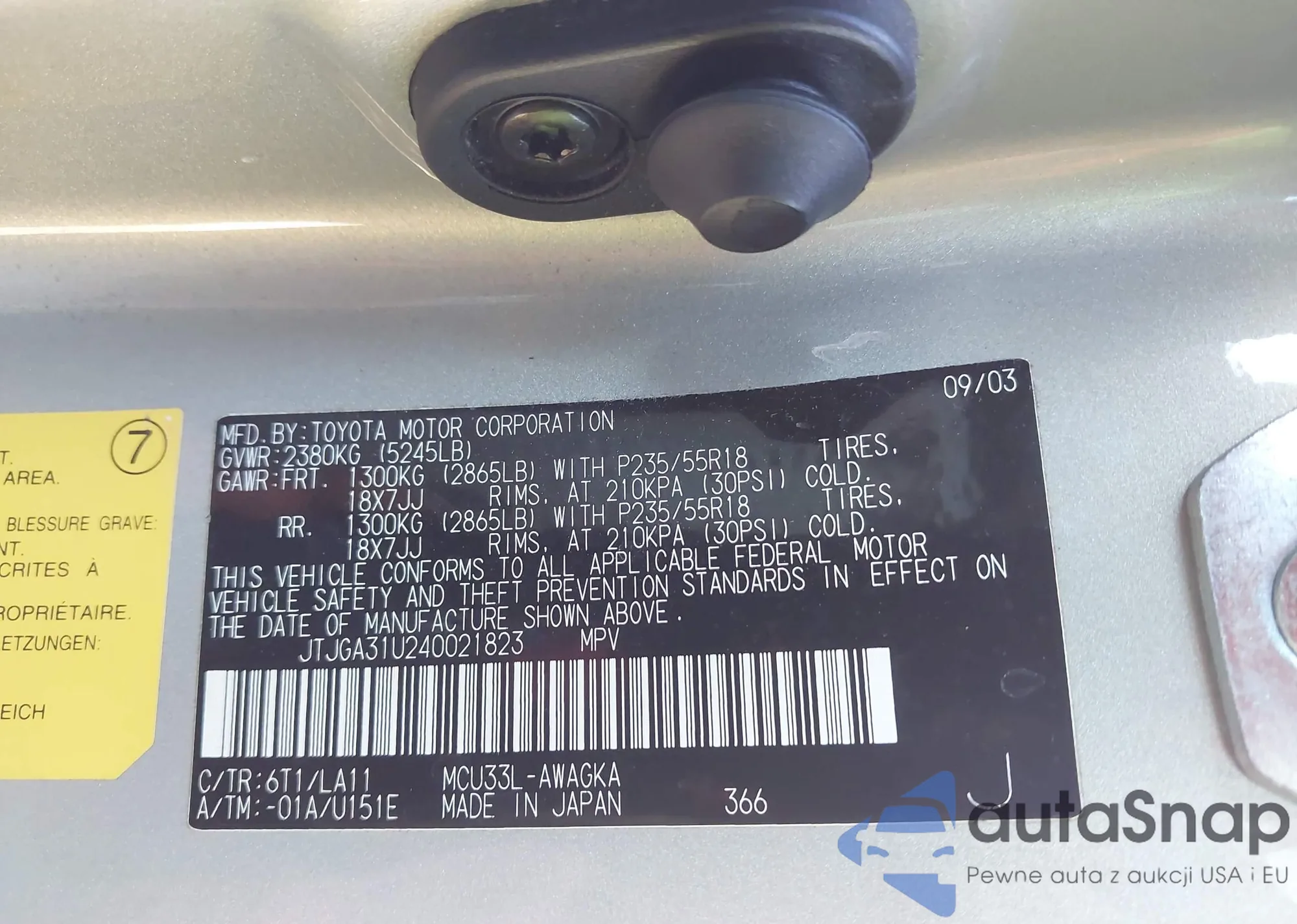 LOT: 43899307 VIN: JTJGA31U240021823