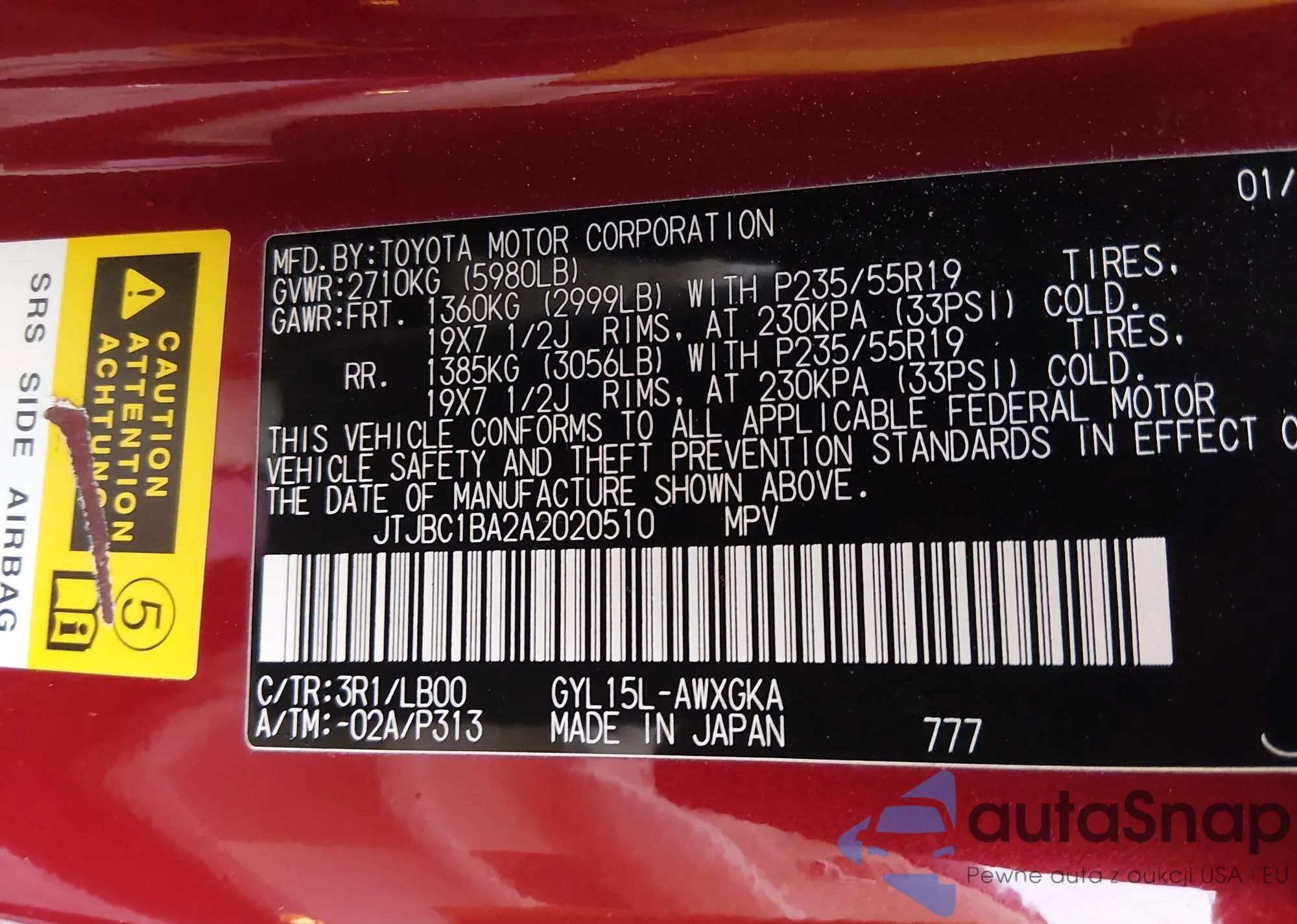 • VIN JTJBC1BA2A2020510
