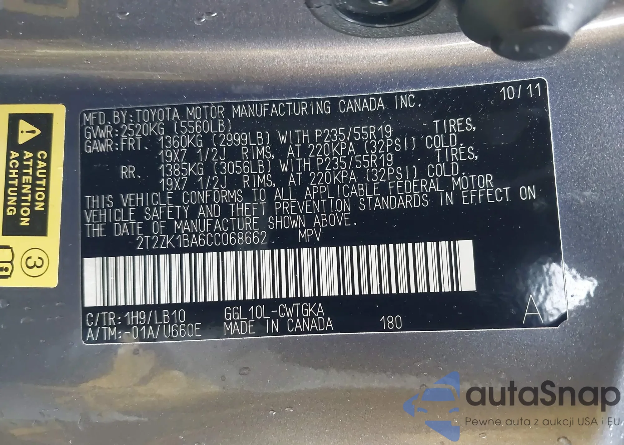 • VIN 2T2ZK1BA6CC068662