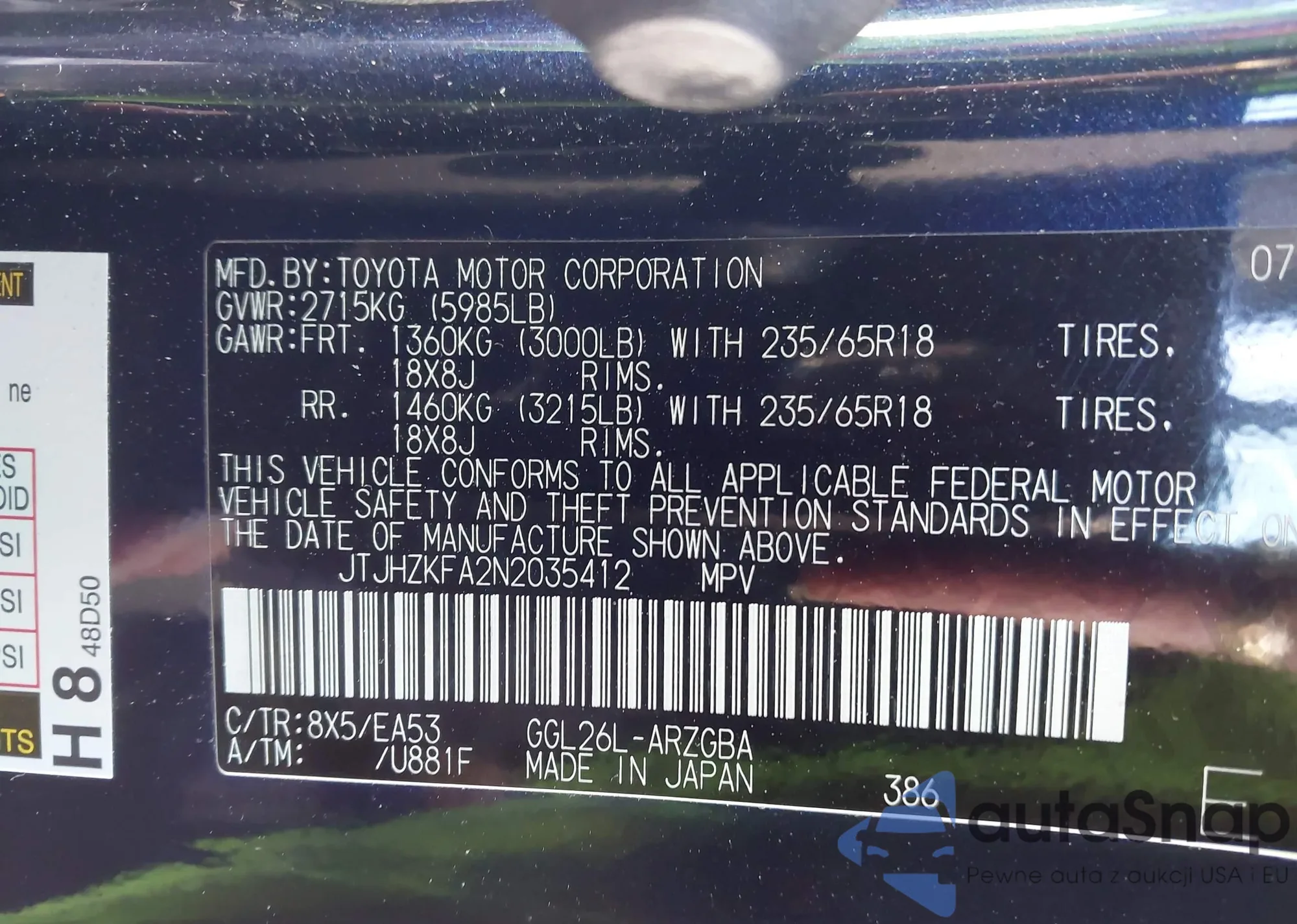 • VIN JTJHZKFA2N2035412