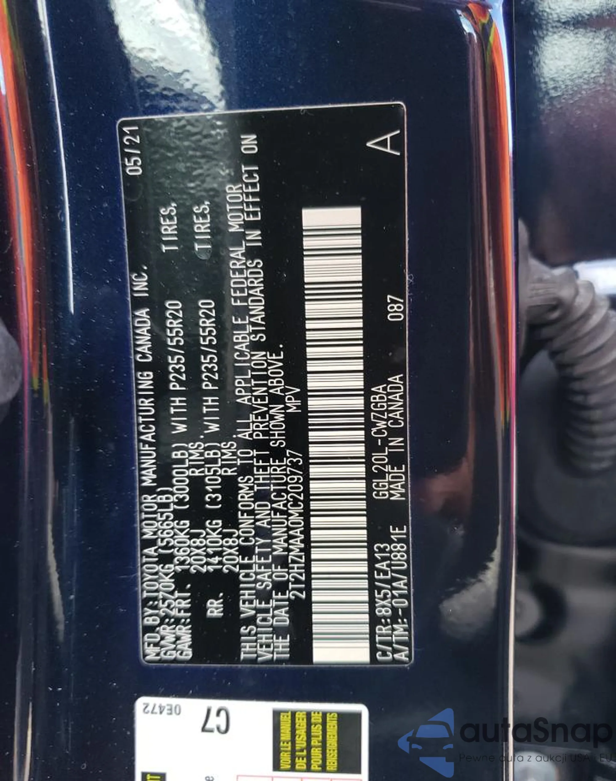 LOT: 68483313 VIN: 2T2HZMAA0MC209737