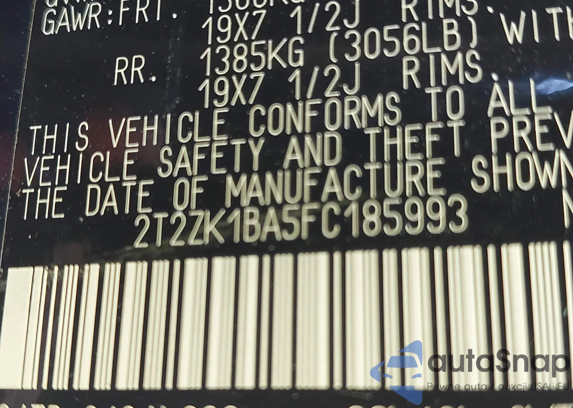 • VIN 2T2ZK1BA5FC185993