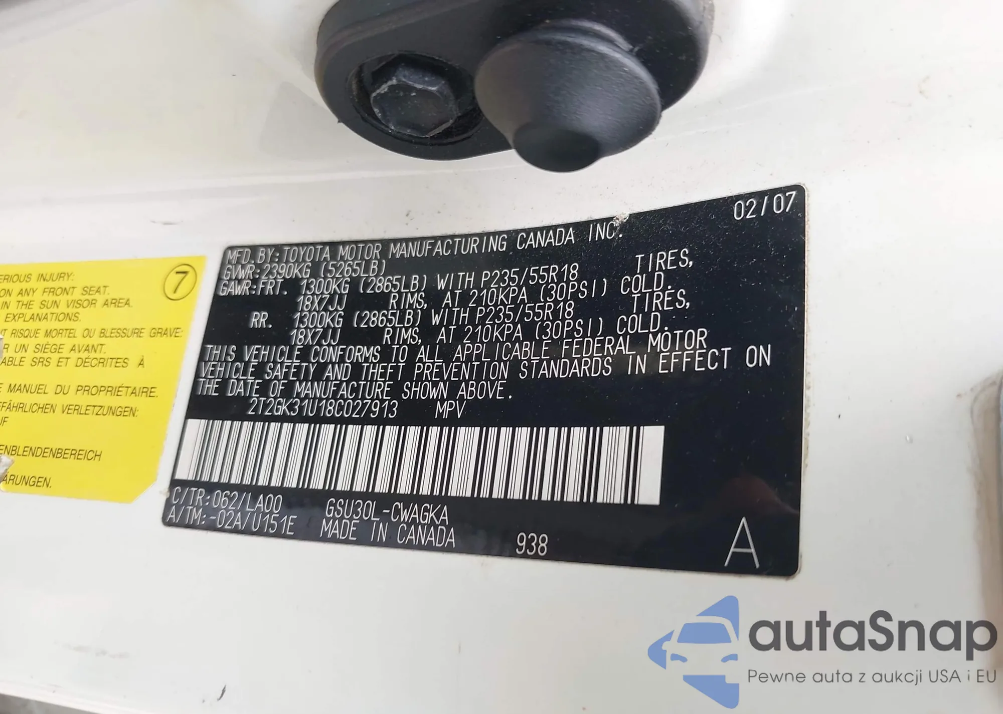 • VIN 2T2GK31U18C027913