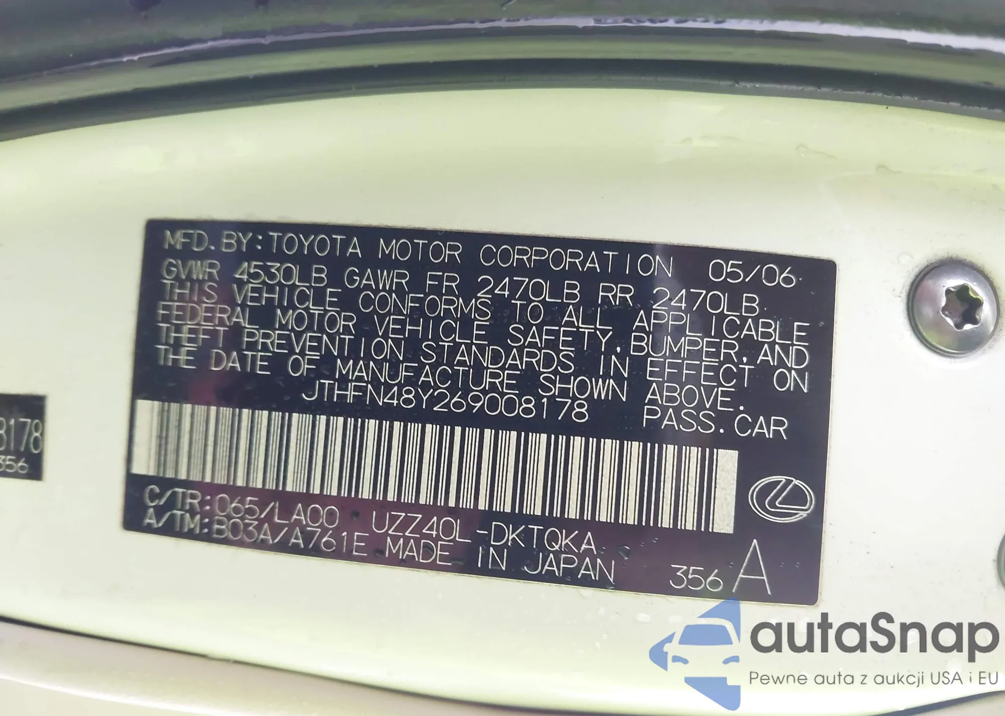 • VIN JTHFN48Y269008178