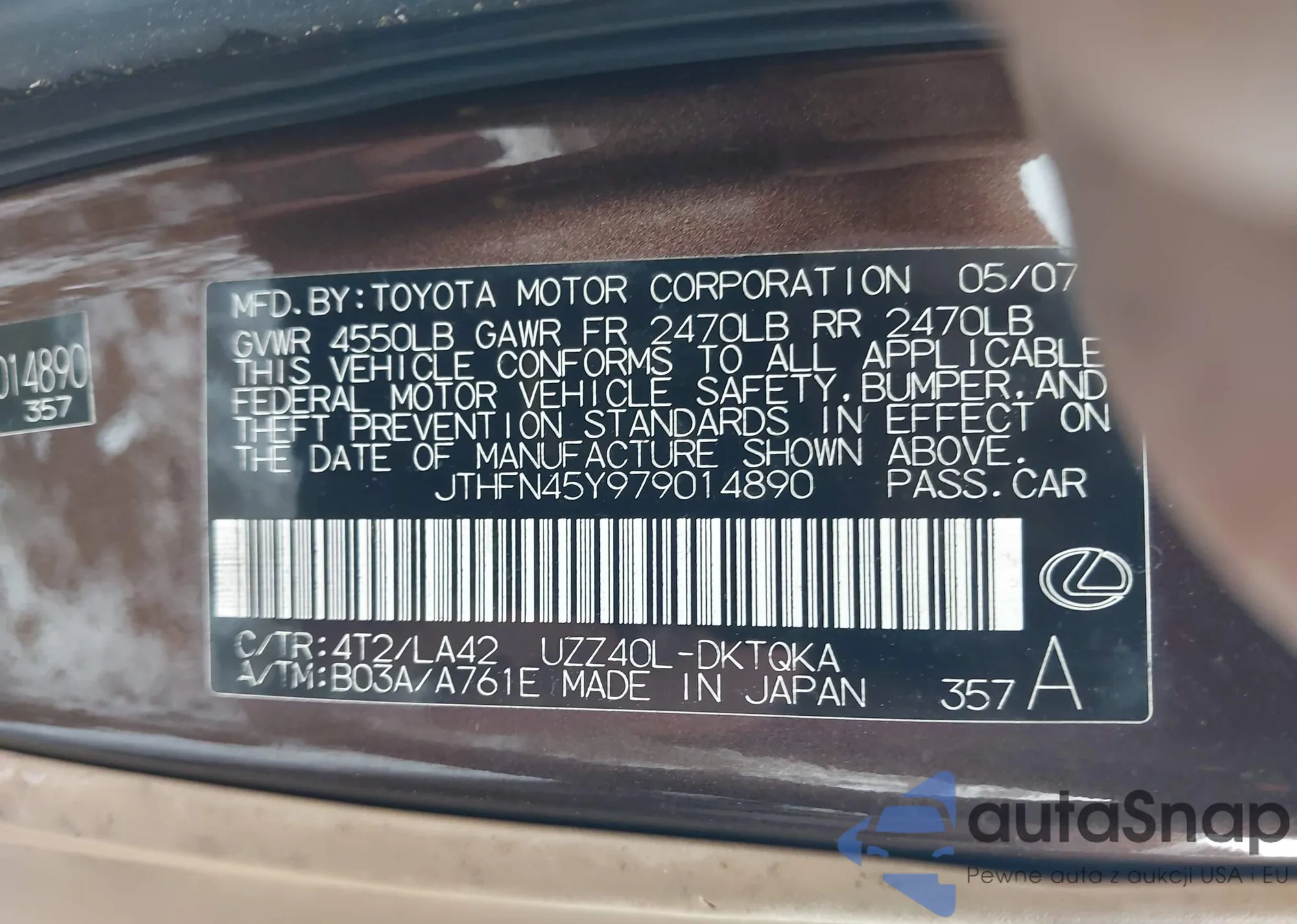 LOT: 44172906 VIN: JTHFN45Y979014890