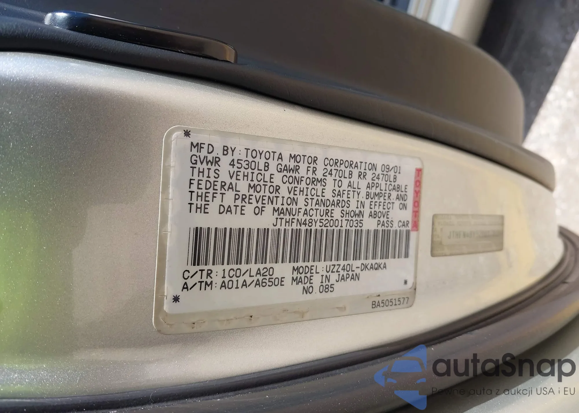 LOT: 45538646 VIN: JTHFN45Y089020207