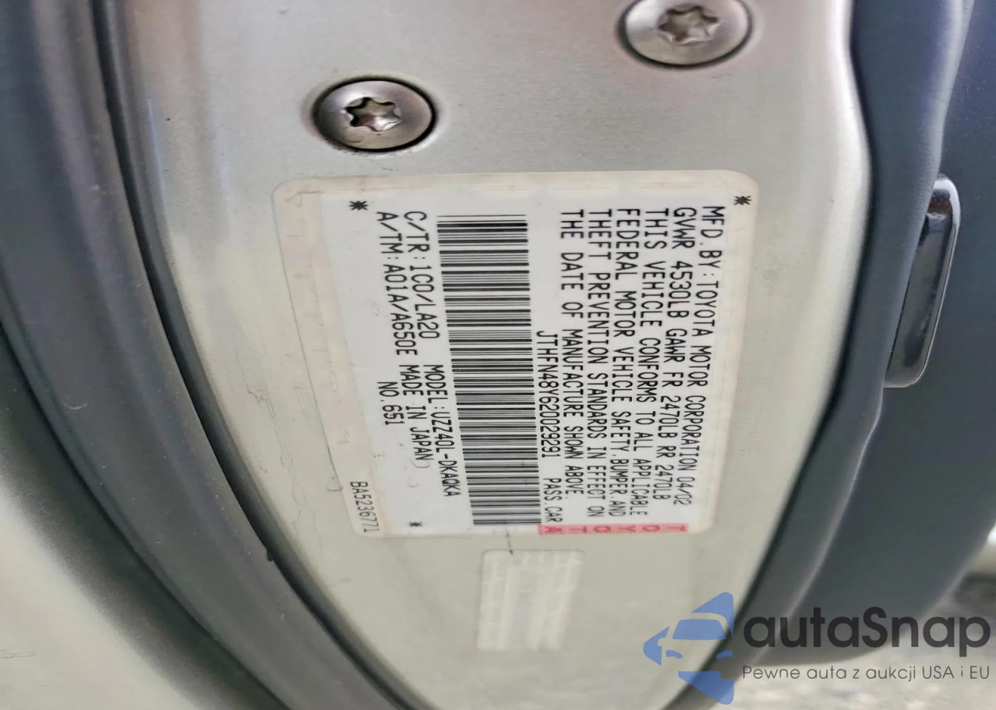 LOT: 74267185 VIN: JTHFN48Y620029291