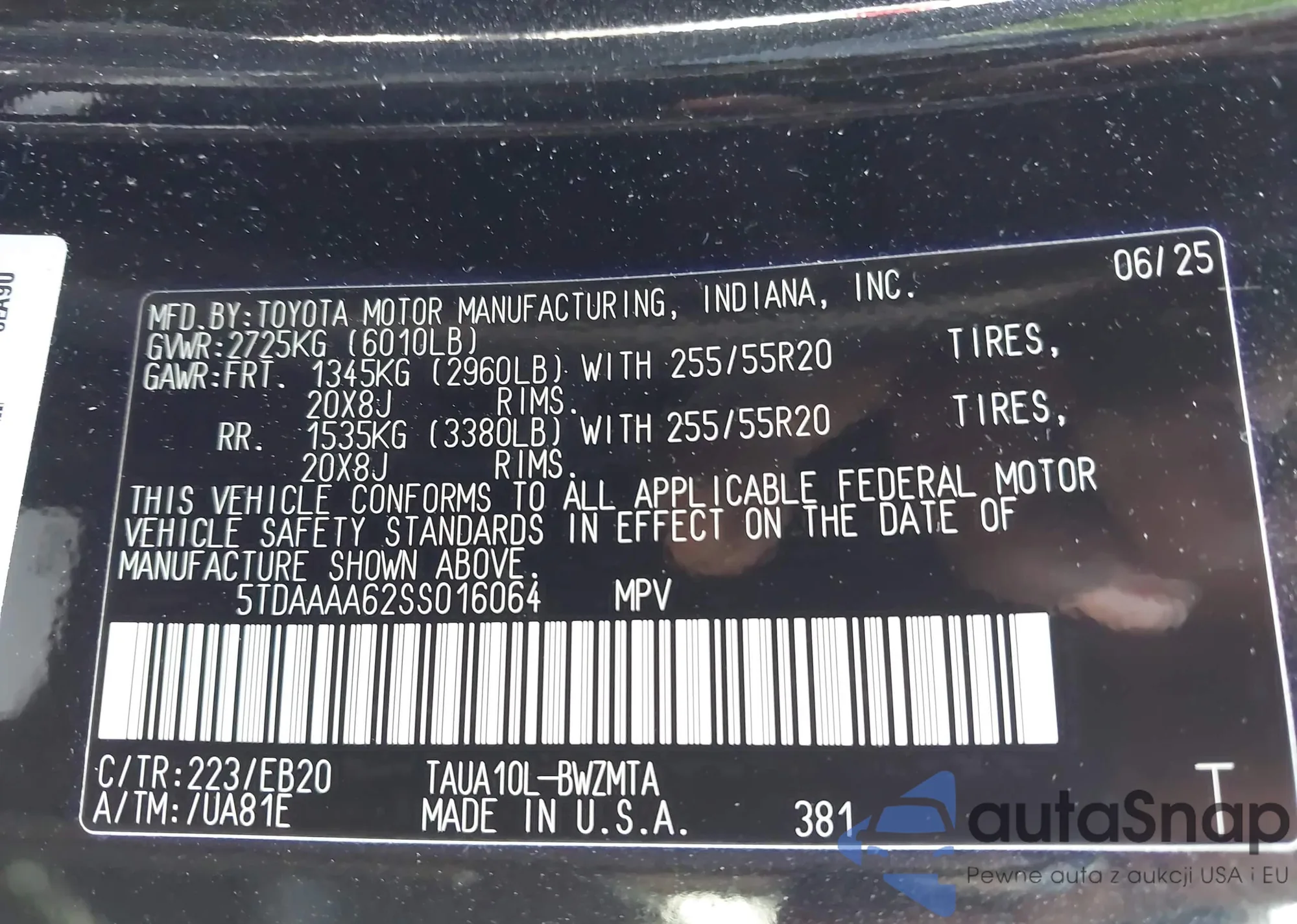 • VIN 5TDAAAB61SS025921