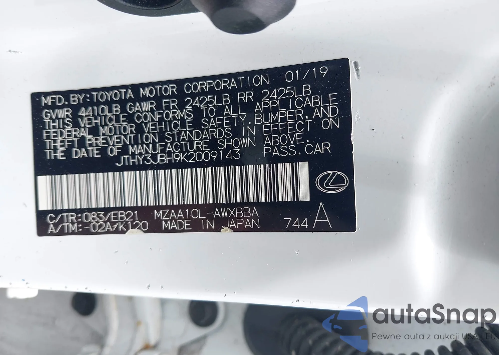 LOT: 42965536 VIN: JTHY3JBH9K2009143